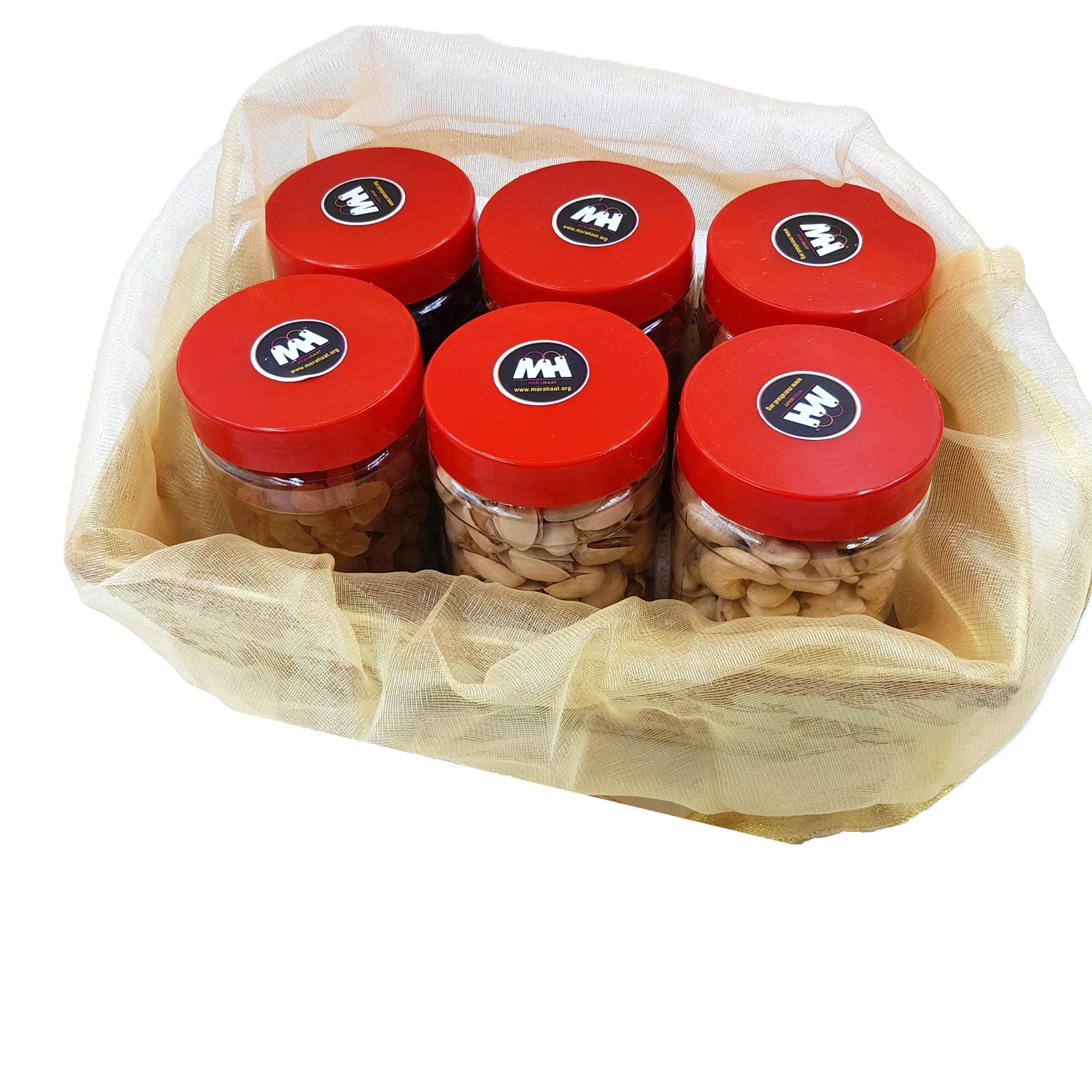 Sab Se Special Dry Fruits Gift Pack – 1020g (California Almond 180g, W240 Kaju 180g, Chili Akhrot Giri 120g, Salted Pista 180g, Yellow Kishmish 180g, Black Kishmish 180g) | Pack of 6 Pet Jars