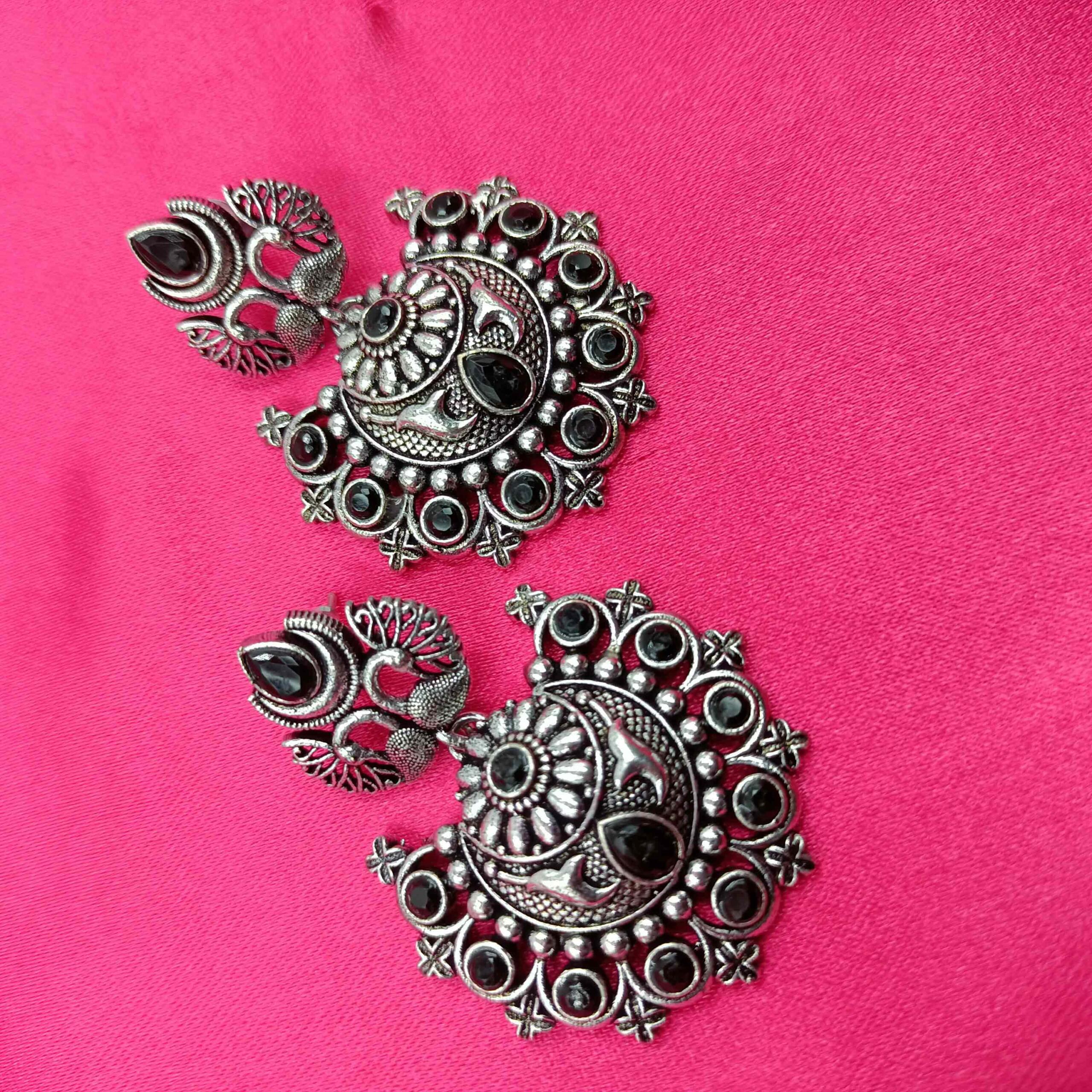 Radiant Oxidized Silver look Black Color Zhumki Chandelier Earrings