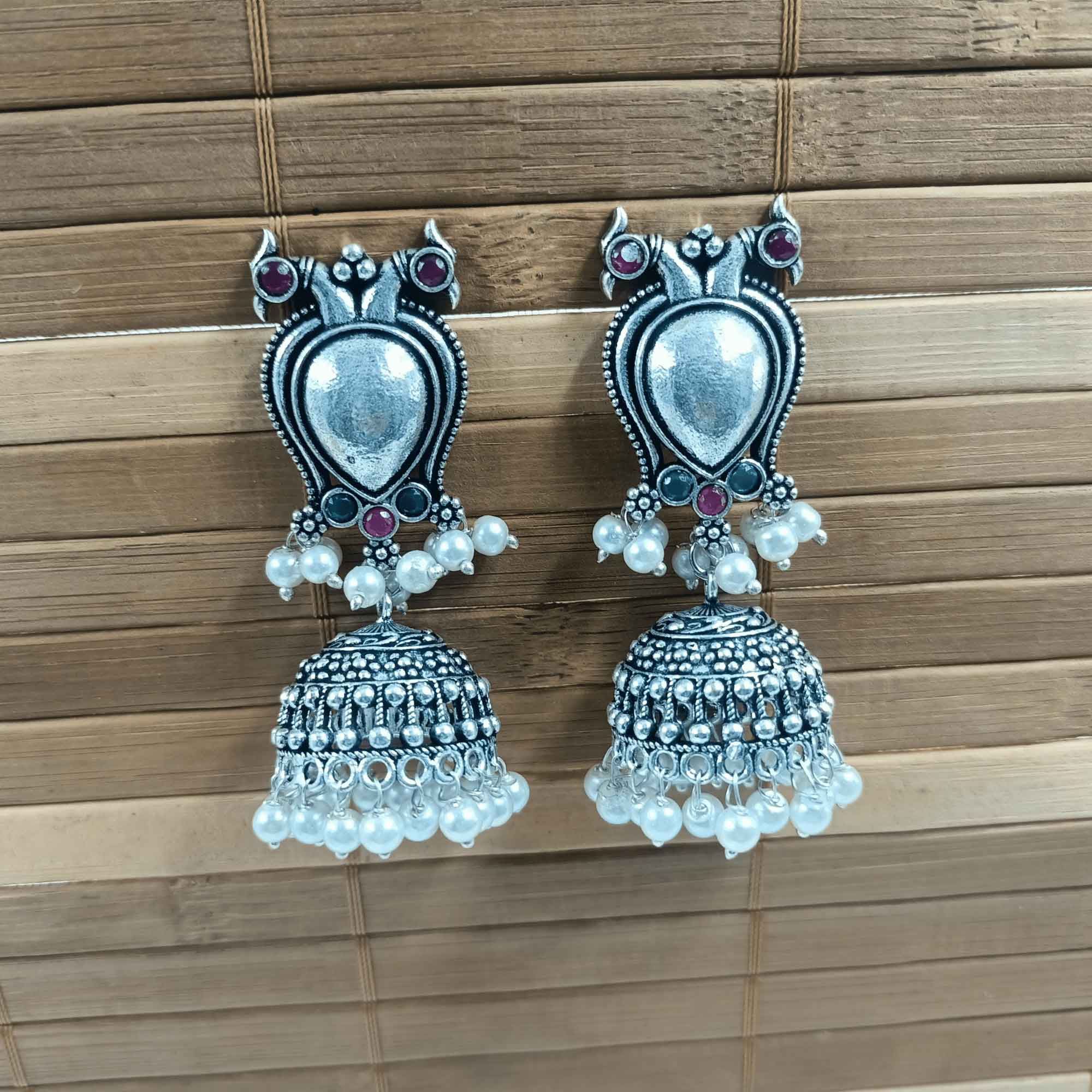 Radiant Oxidized Silver look Rani Color Zhumki Chandelier Earrings