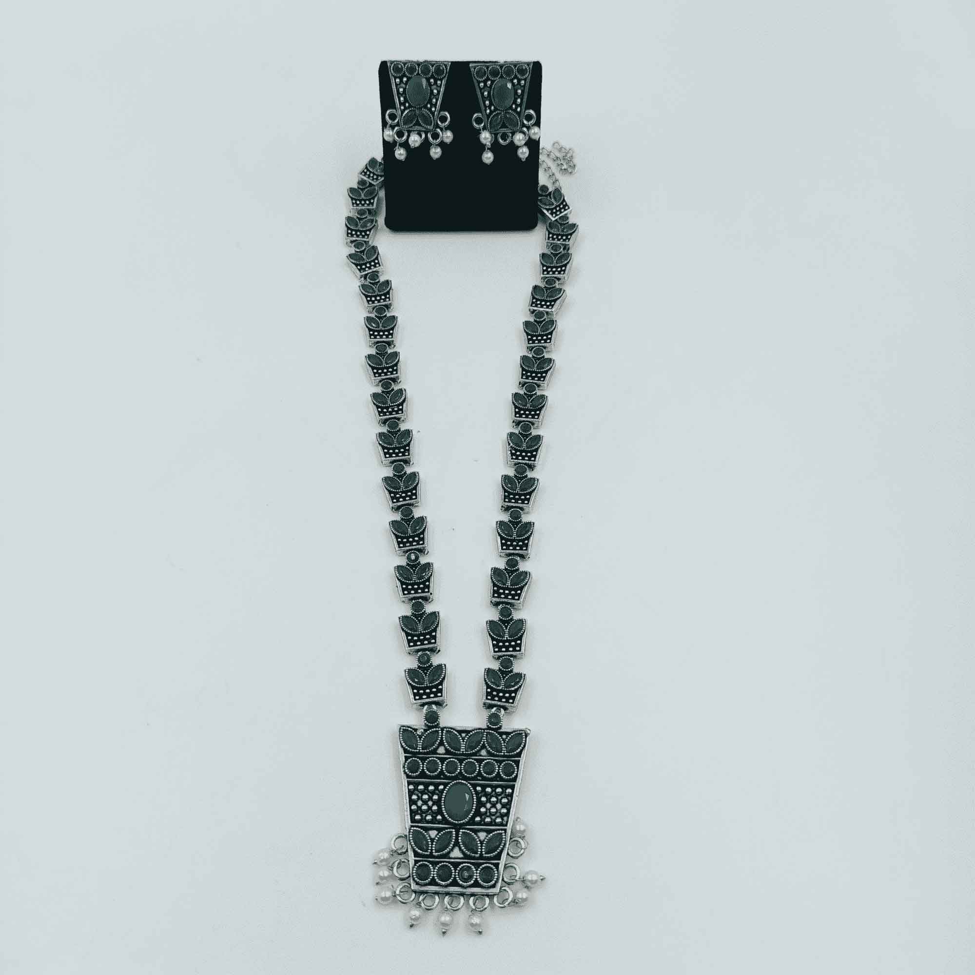 Ethereal Aura Silver Look Oxidized Black Color Long Necklace Set