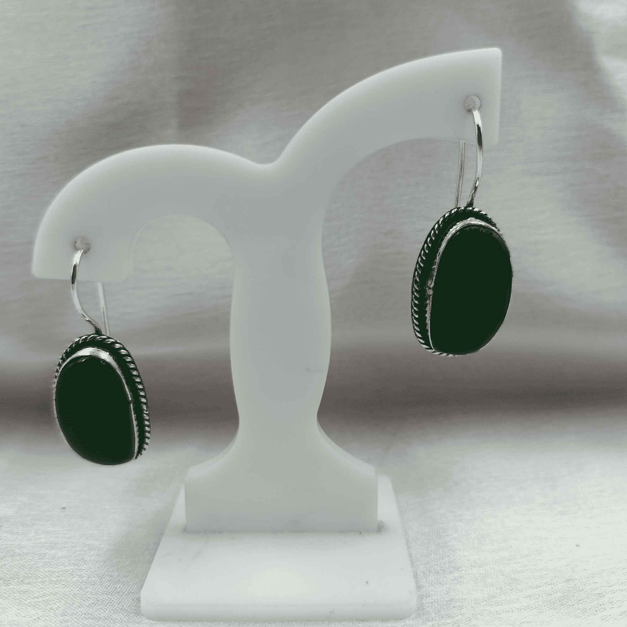 Silver Mist Oxidized Bottle Green Color Drop Earrings
