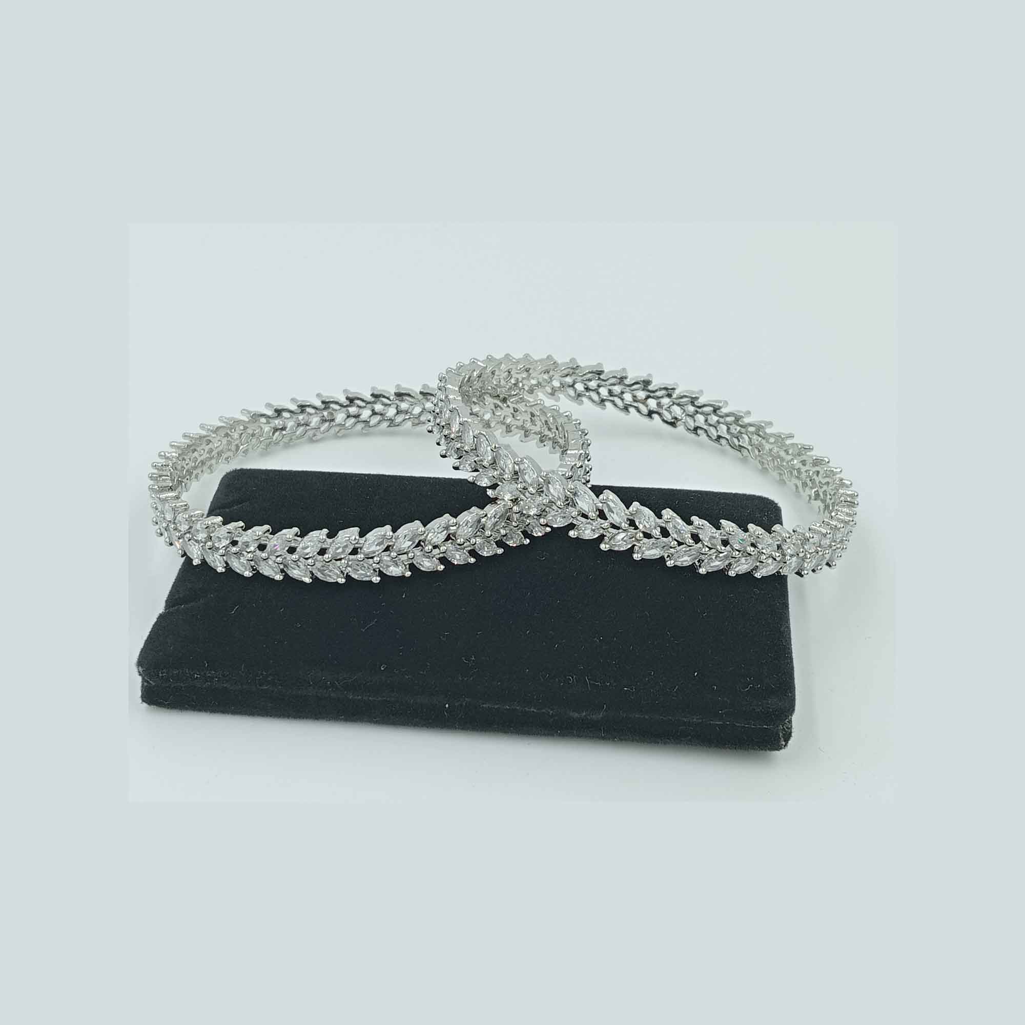 Elegent Silve Color American Diamond Bangle Kangan Kada Set (Size 2.8)