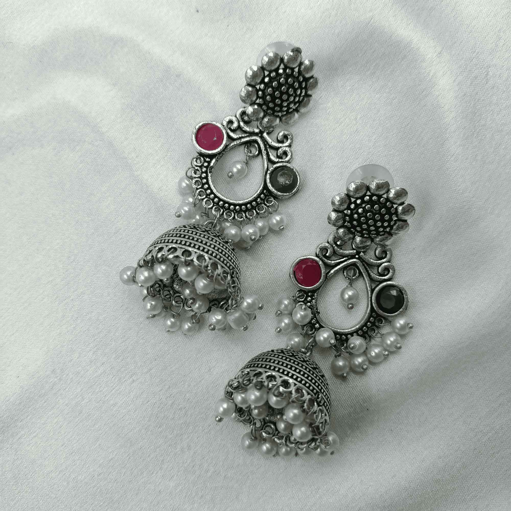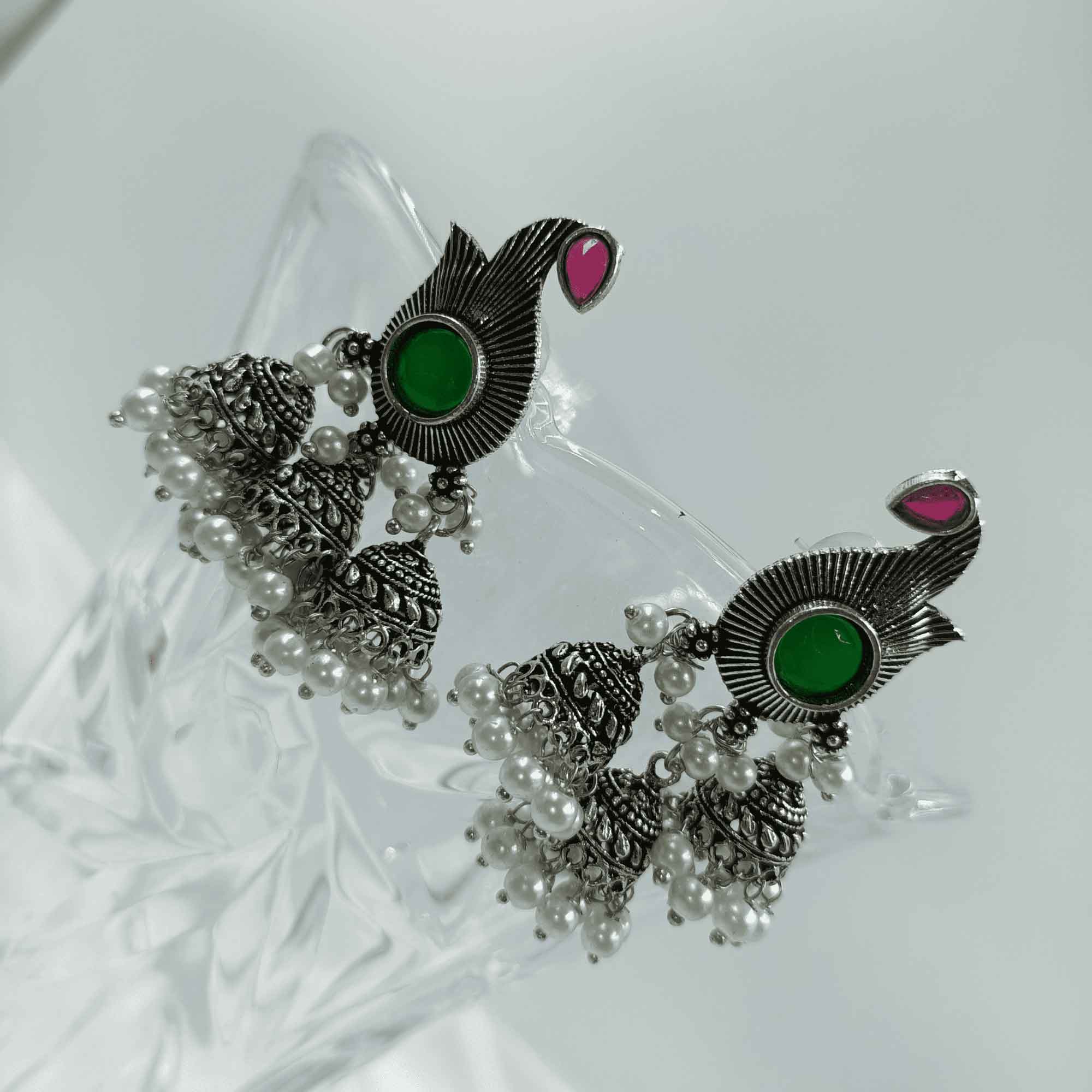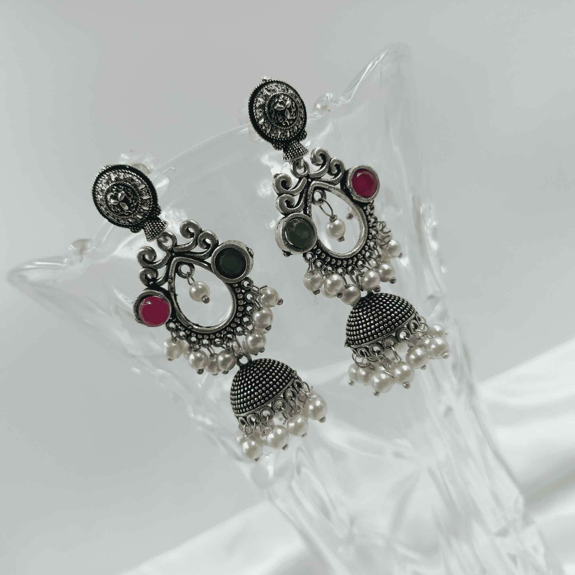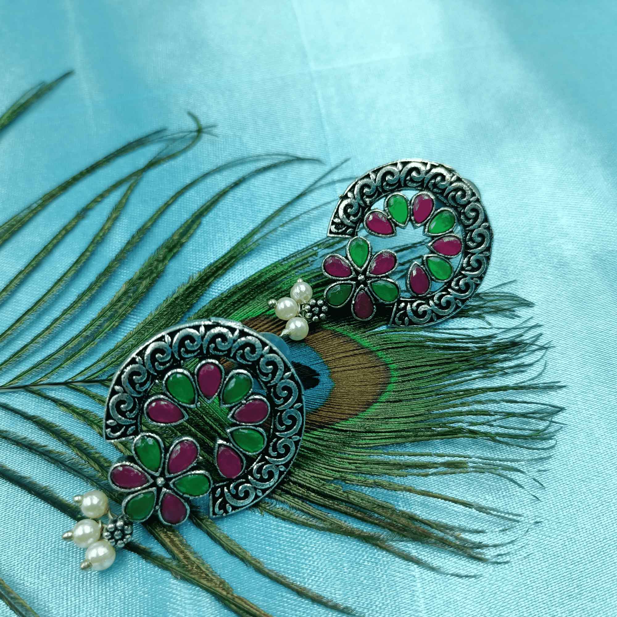 Ethereal Glow Silver Oxidized Multi Color Dangler Earrings