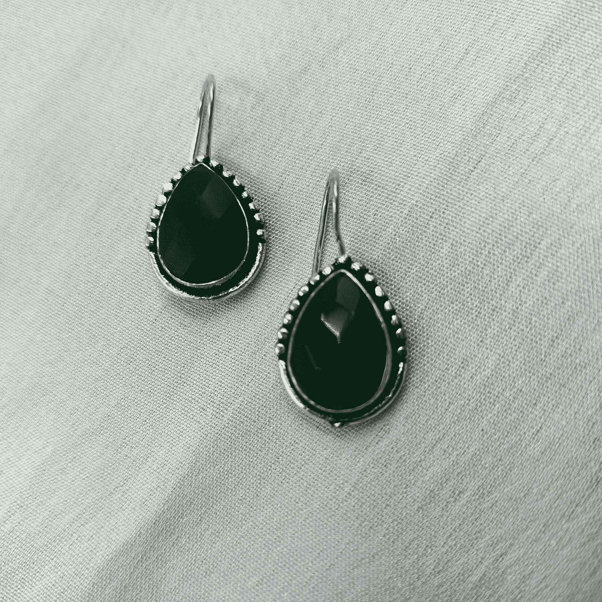 Moonlit Reflections Silver Look Black Color Drop Earrings