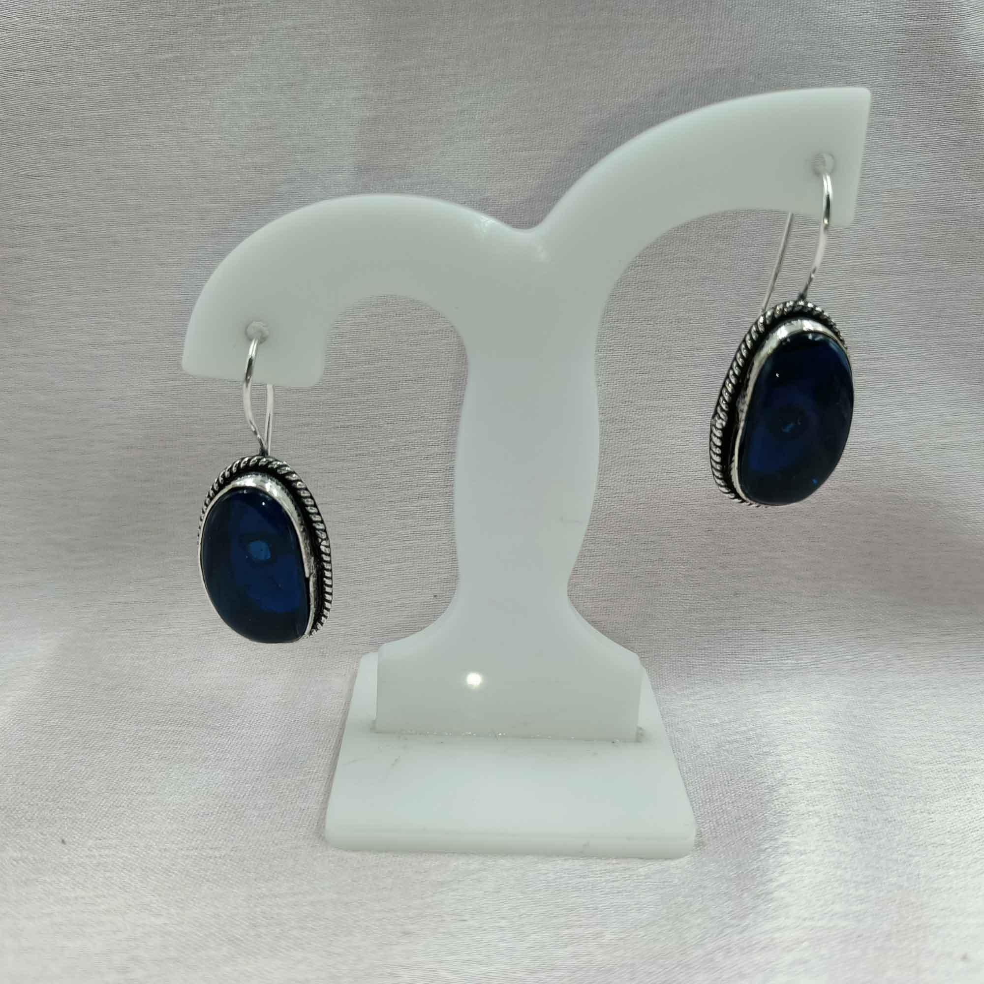 Silver Mist Oxidized Royal Blue Color Drop Earrings