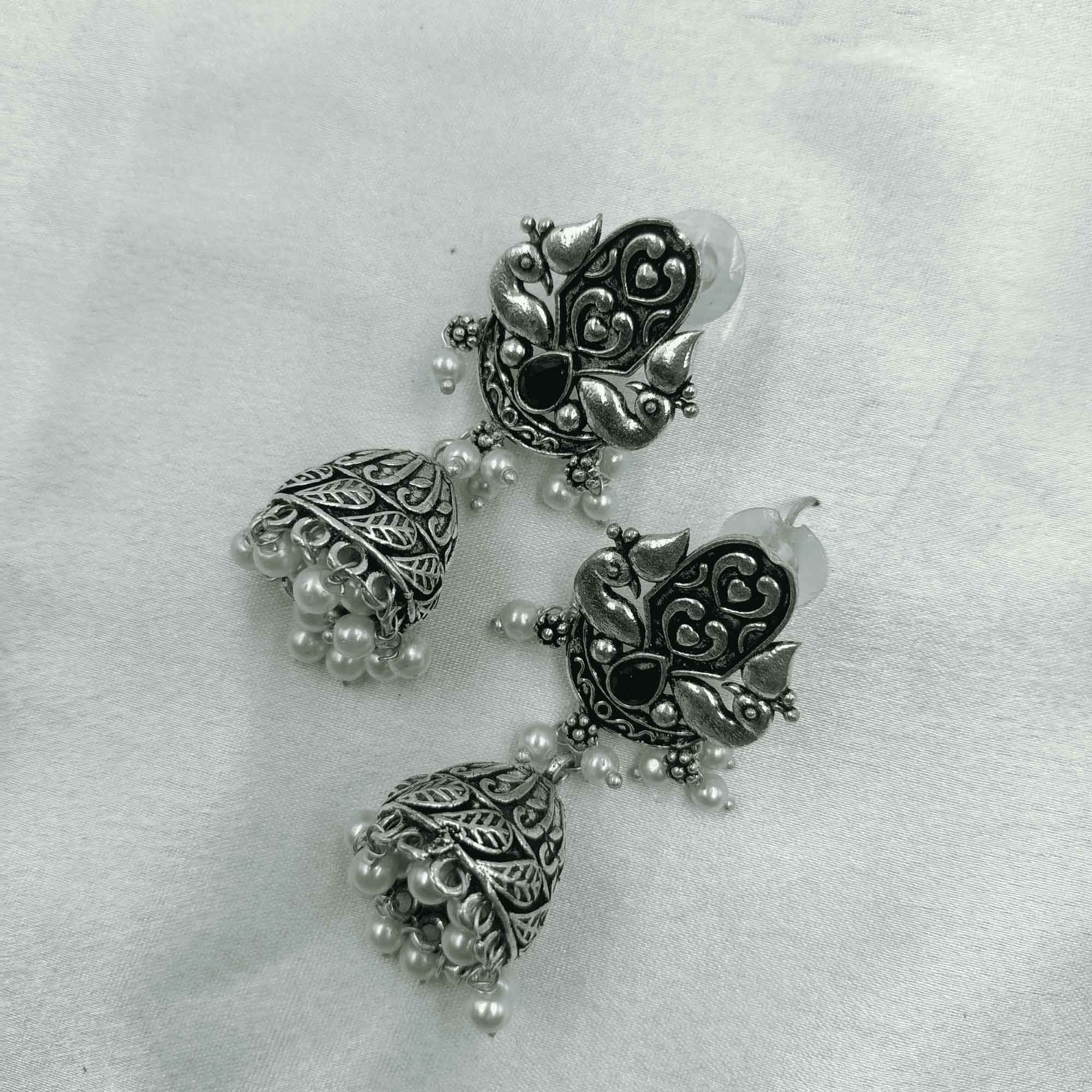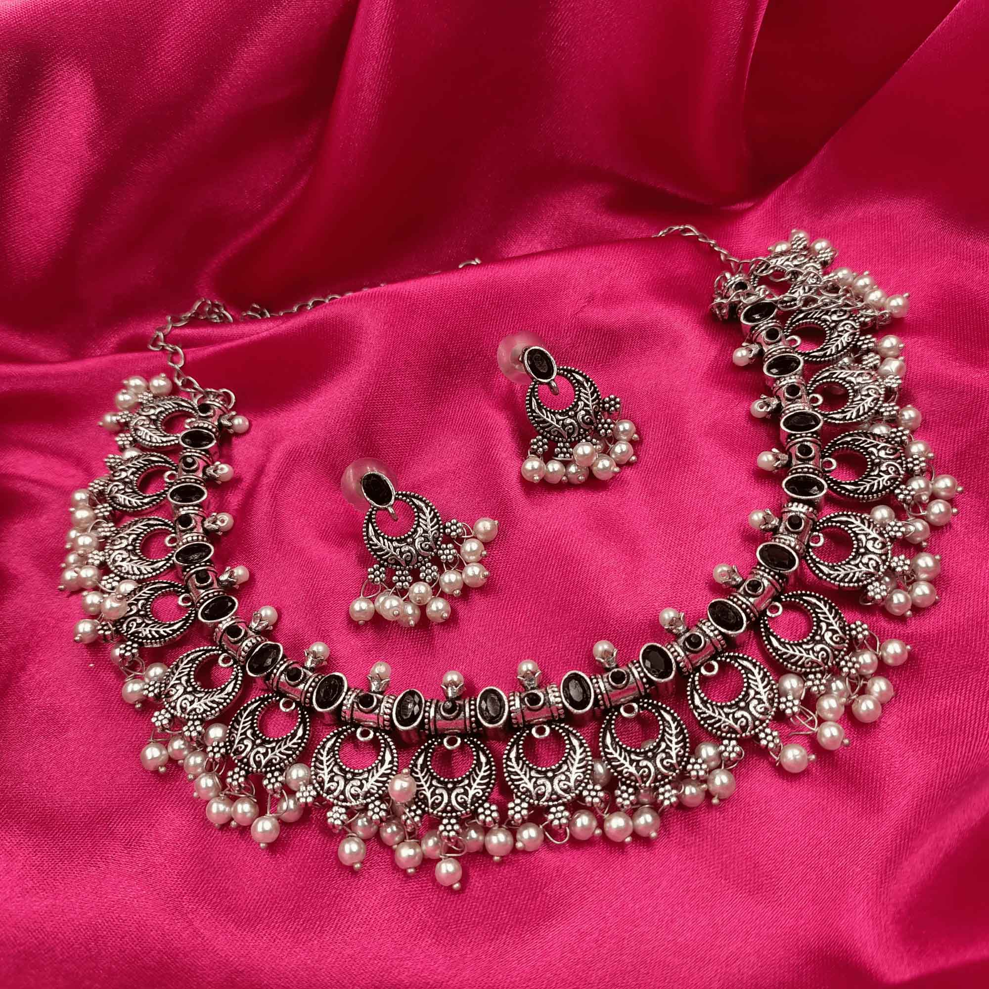 Glamorous Oxidized Silver Look Black color Necklace Set with Earrings