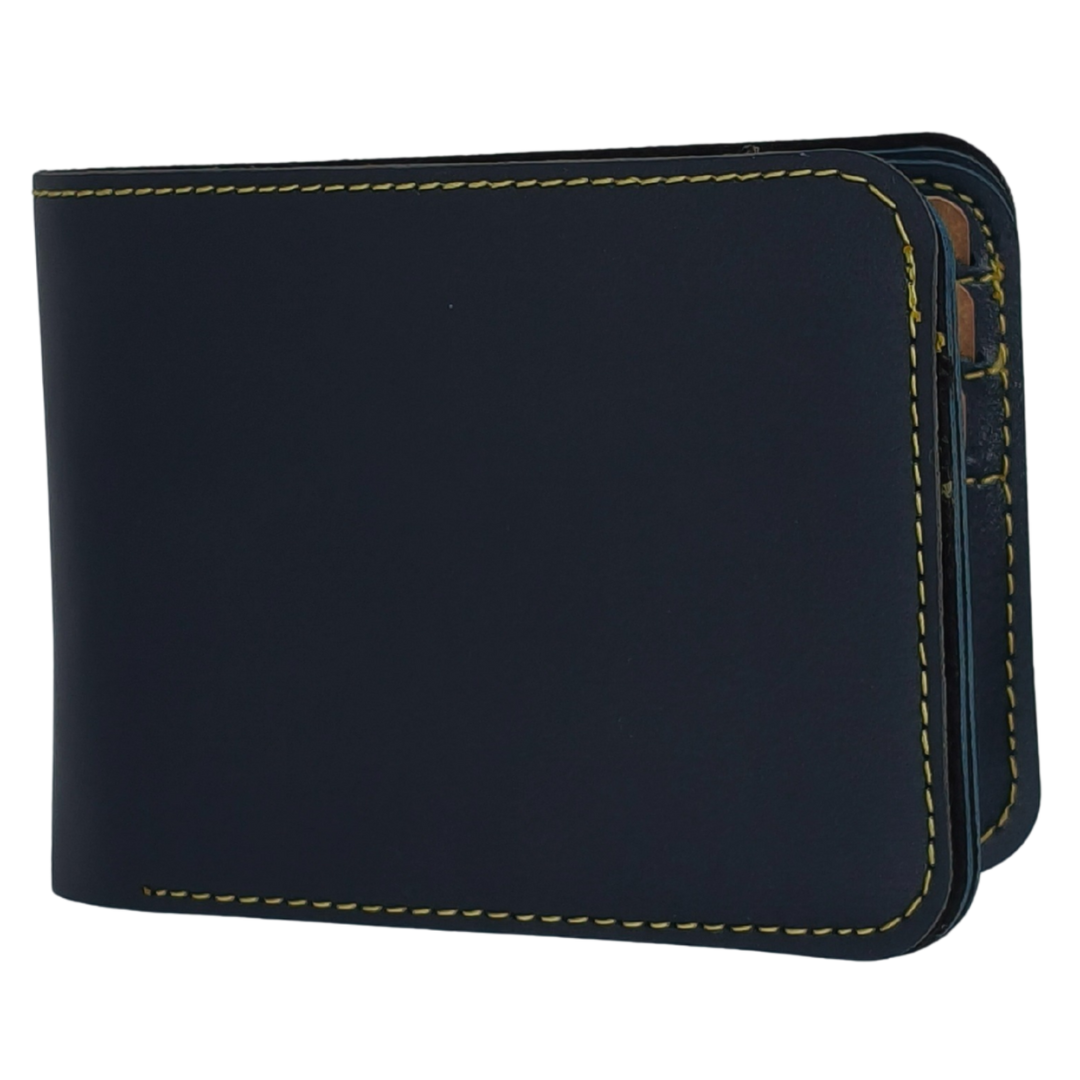 SURMEE Premium Bifold Leather Dark Blue Wallet for Men’s | Transparent ID Window, Multiple Card Slots & Contrast Stitching