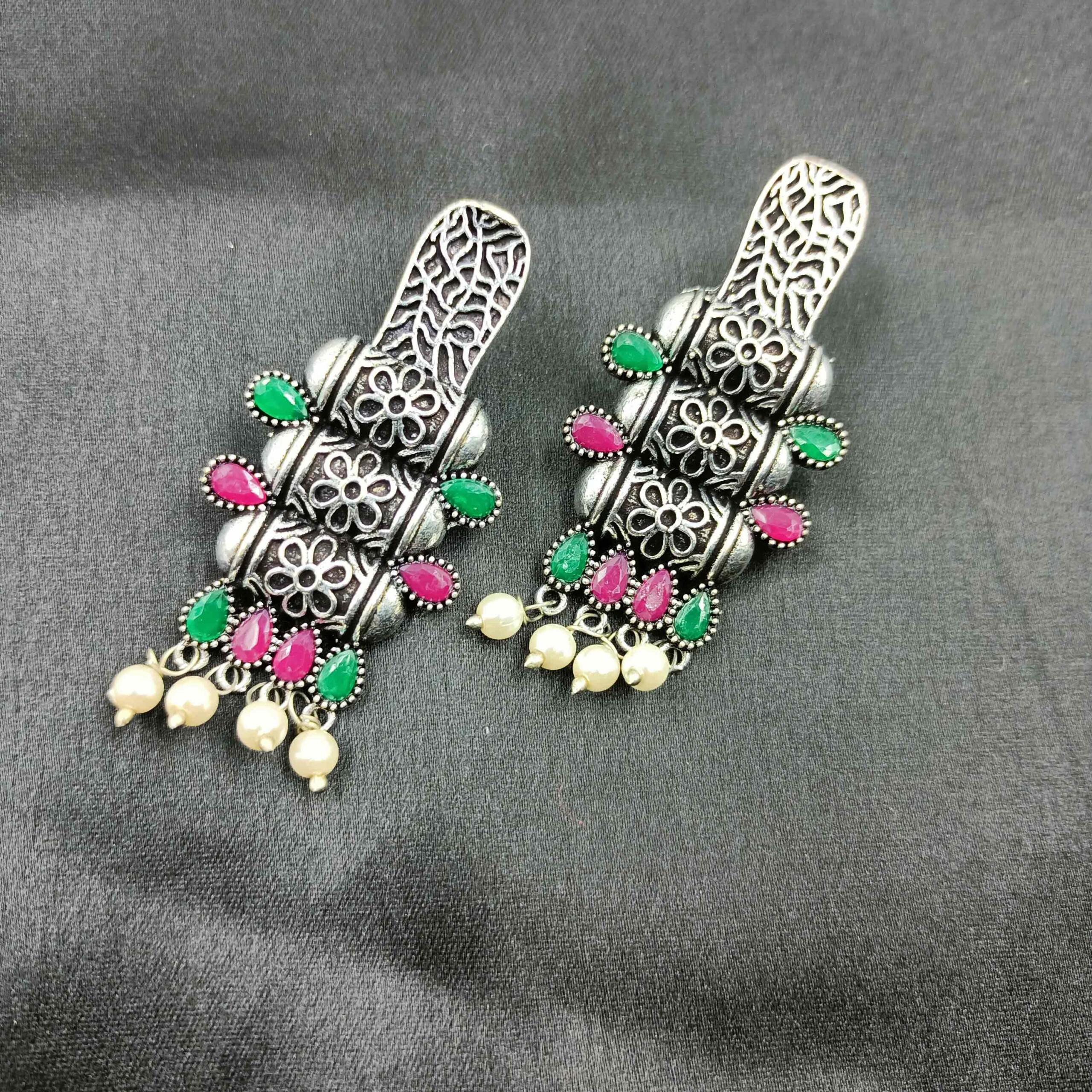 Oxidised German Silver Multicolor Trible Dangle Earrings with Pearl