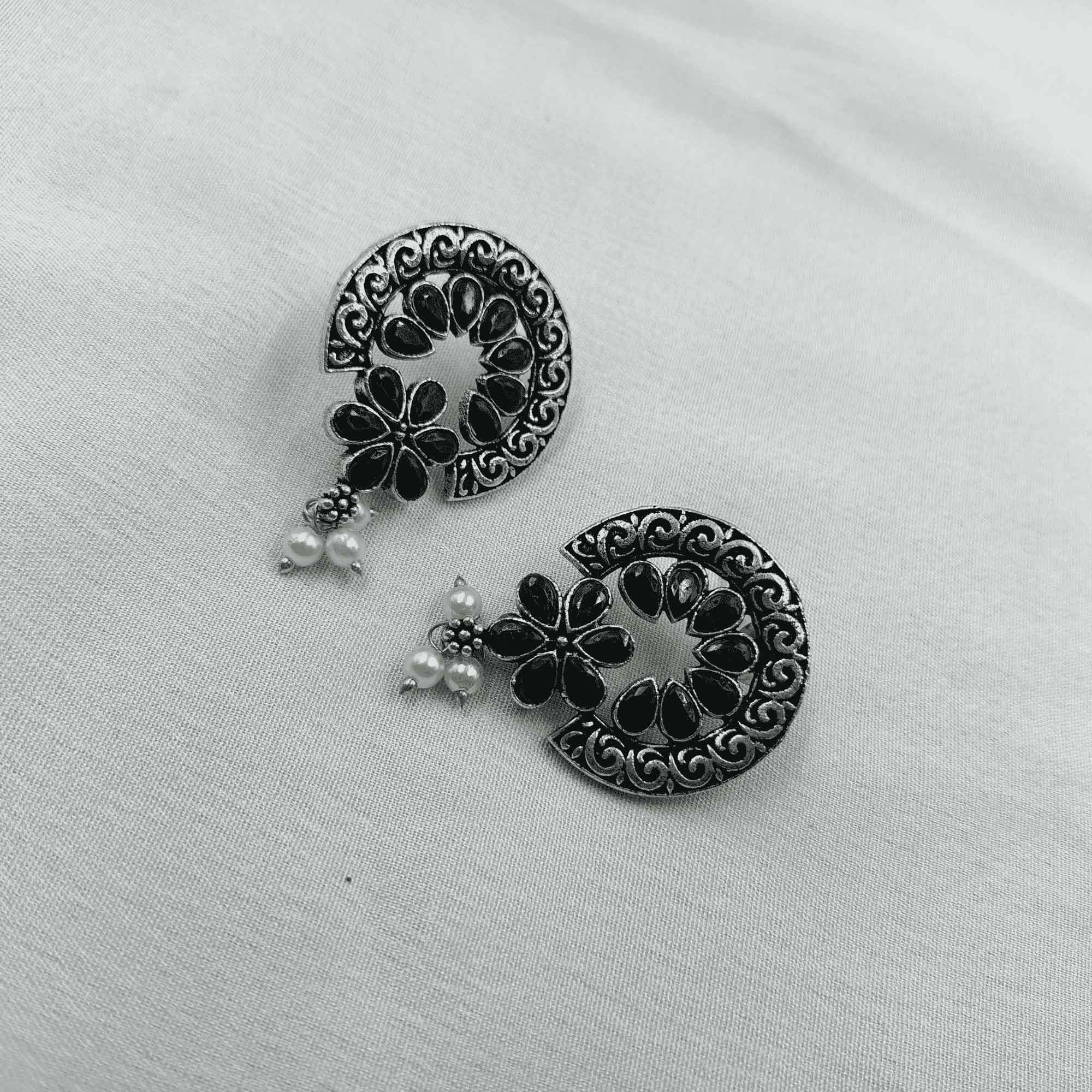 Ethereal Glow Silver Oxidized Black Color Dangler Earrings