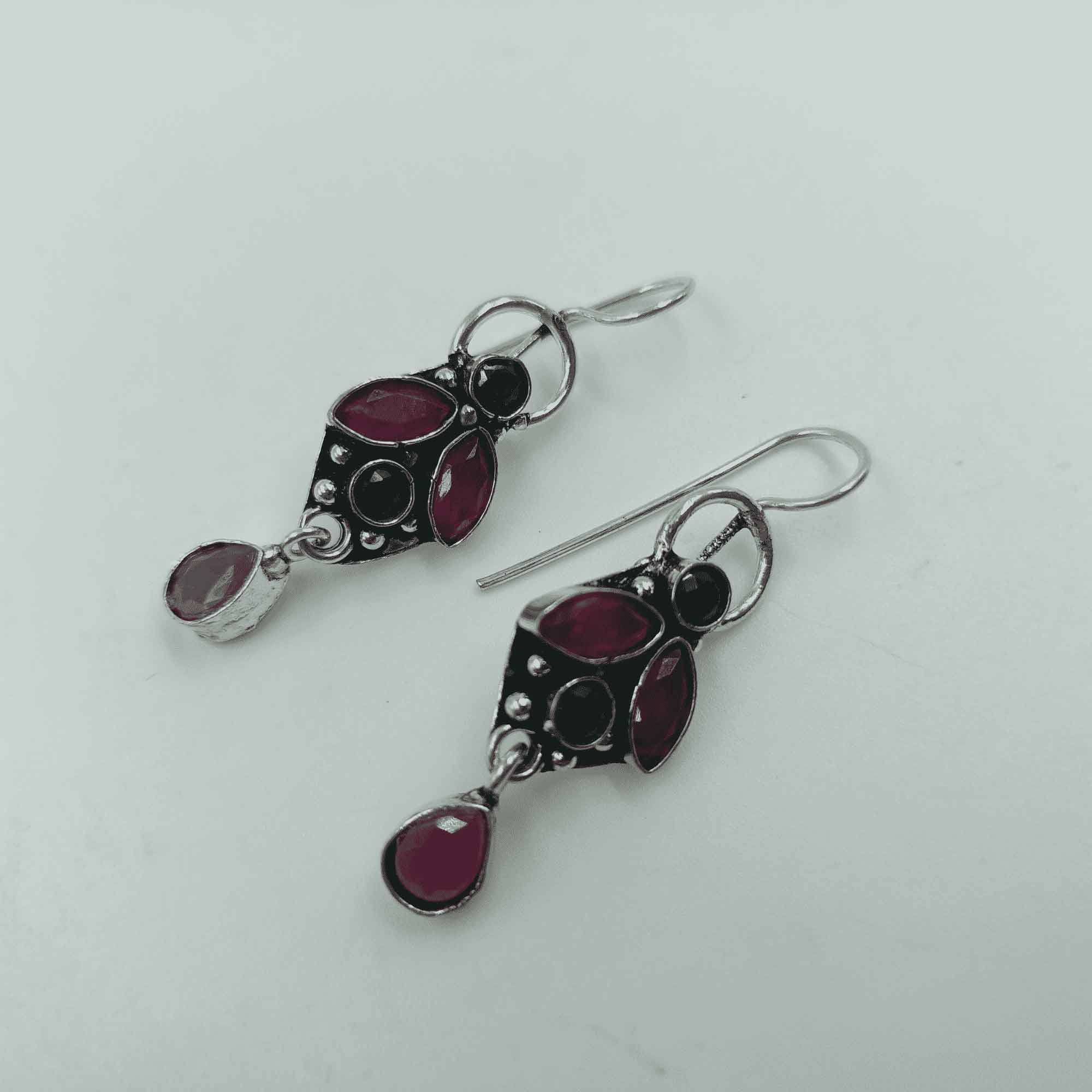 Vintage Silver Charm Oxidized Red & Green Color Drop Earrings