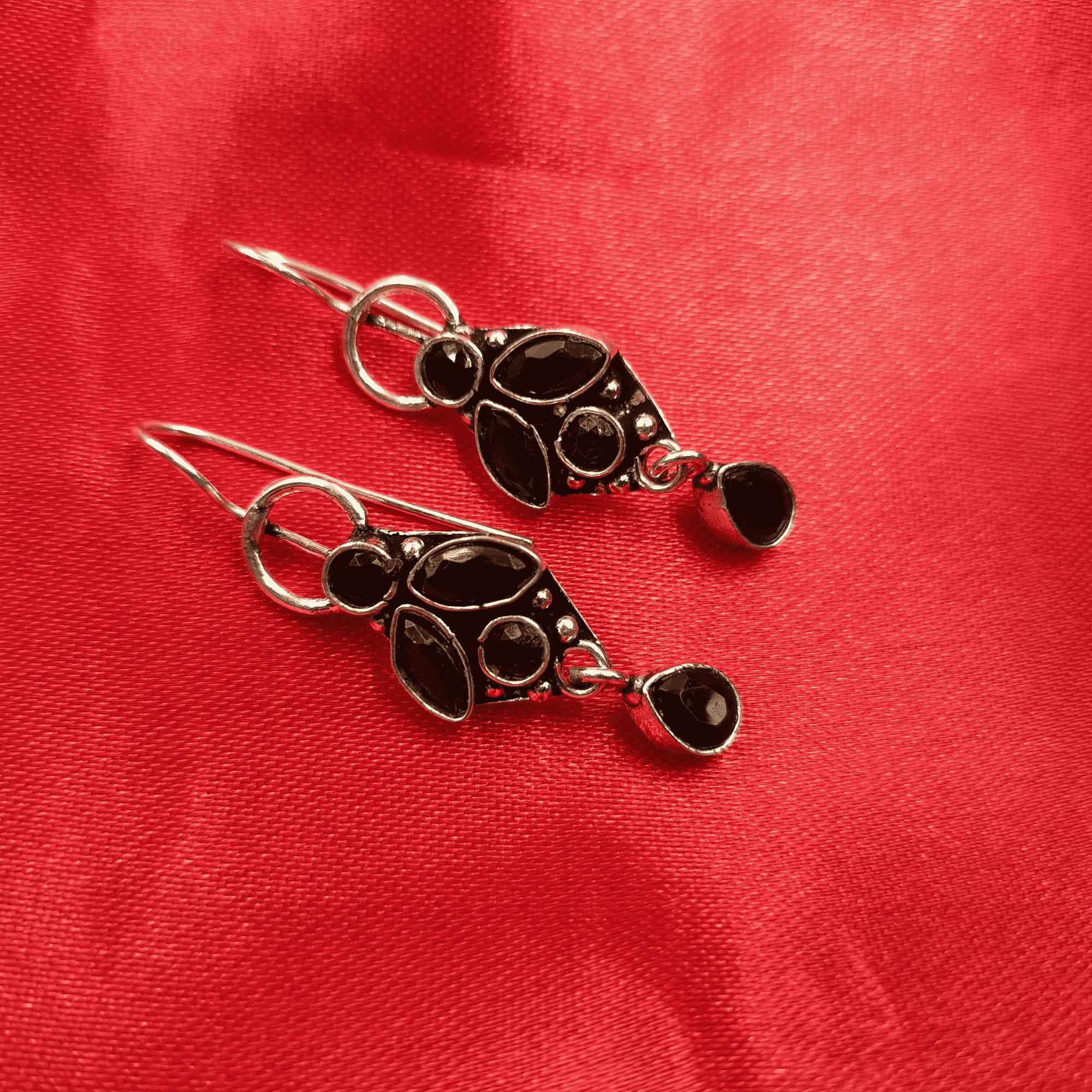Vintage Silver Charm Oxidized Blsck Color Drop Earrings