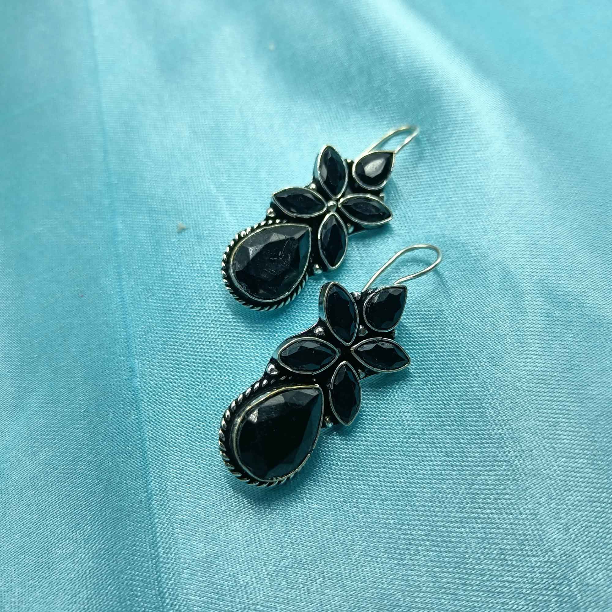 Moonlit Reflections Silver Look Black Color Drop Earrings