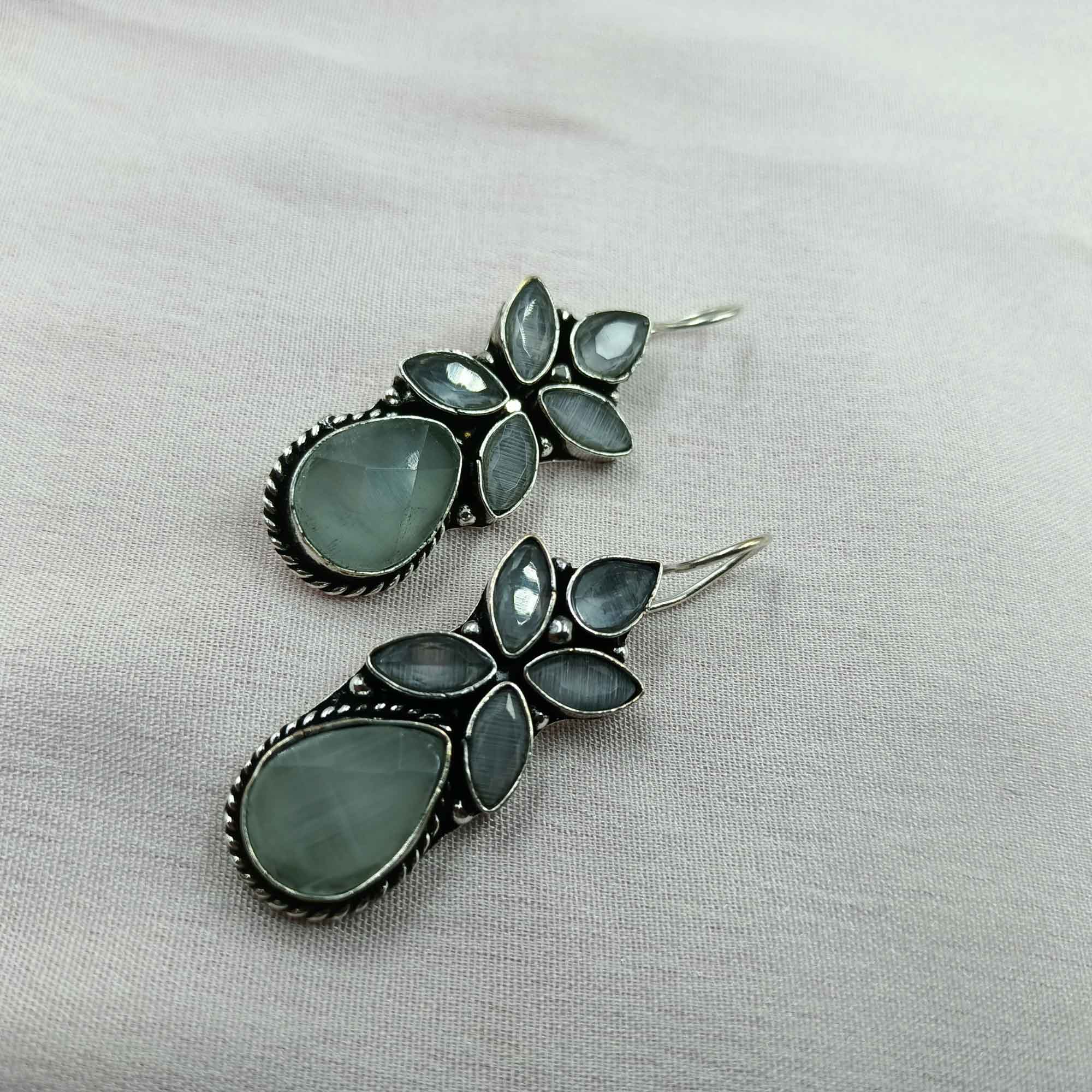 Silver Mist Oxidized Gray Color Drop Earrings