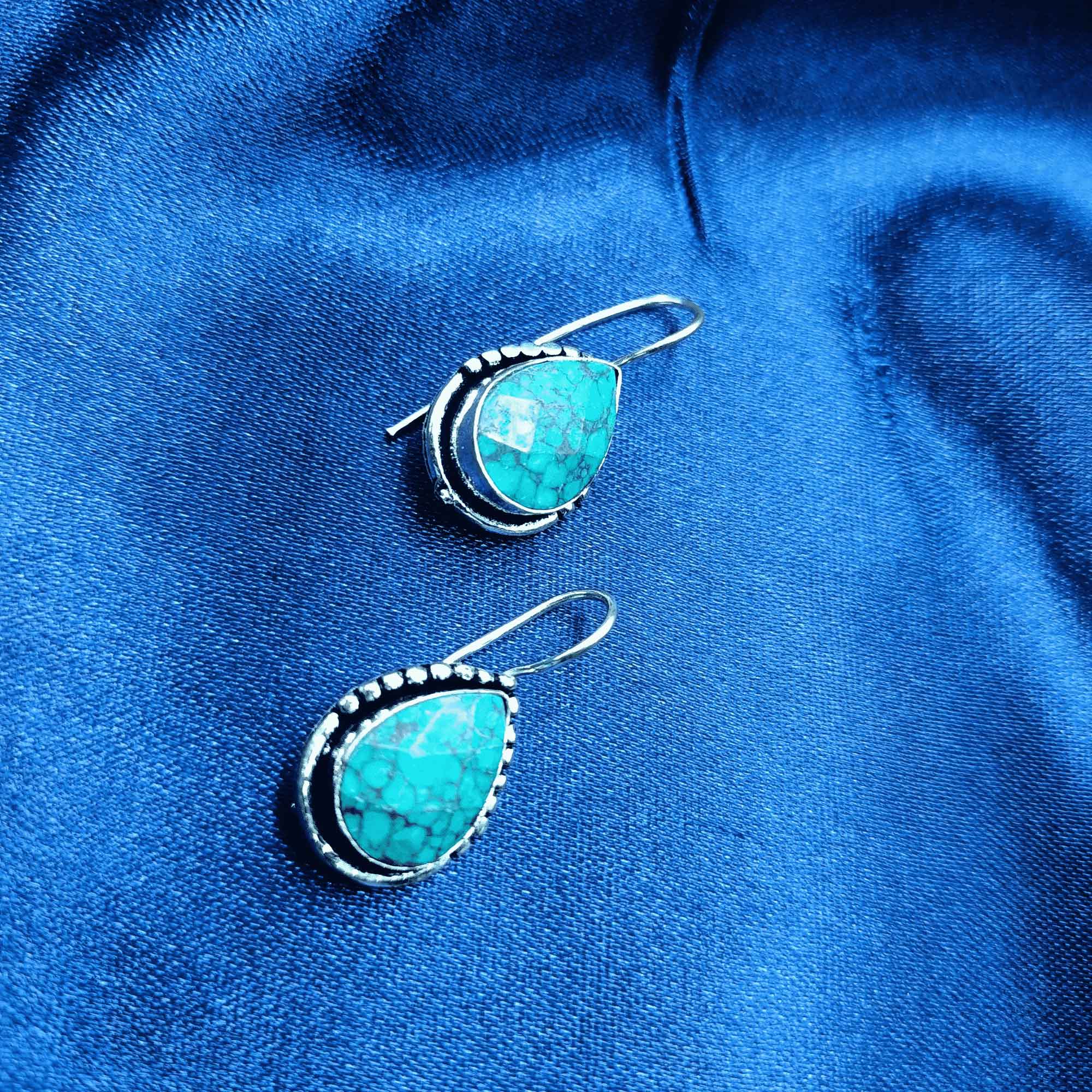 Moonlit Reflections Silver Look Turquios Blue Color Drop Earrings