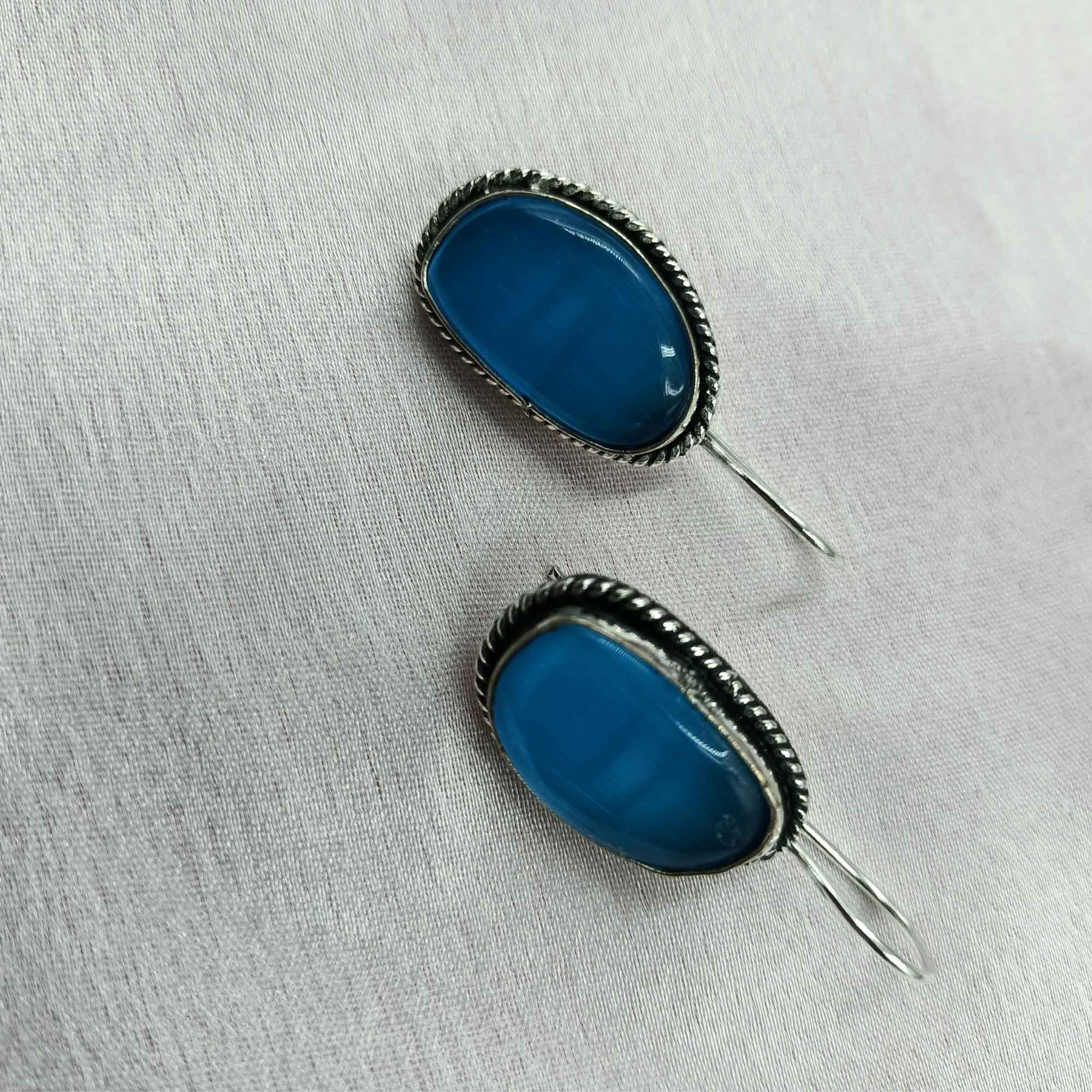 Silver Mist Oxidized Blue Color Drop Earrings