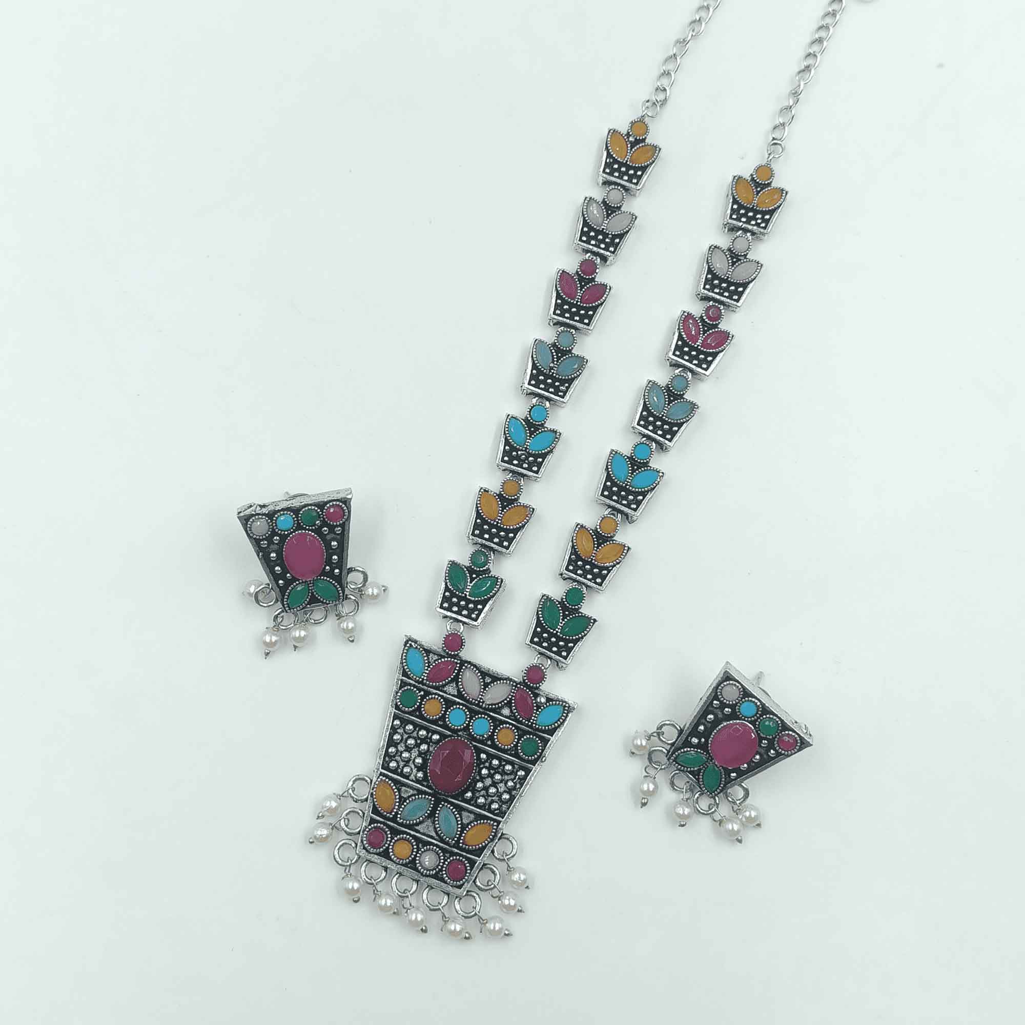 Ethereal Aura Silver Look Oxidized Multi Color Long Necklace Set – Online Shopping Site for Jewellery, Women Fashion Jewellery, Furniture, Grocery, Lifestyle, Dry Fruits, Seeds ; More. Best Offers!