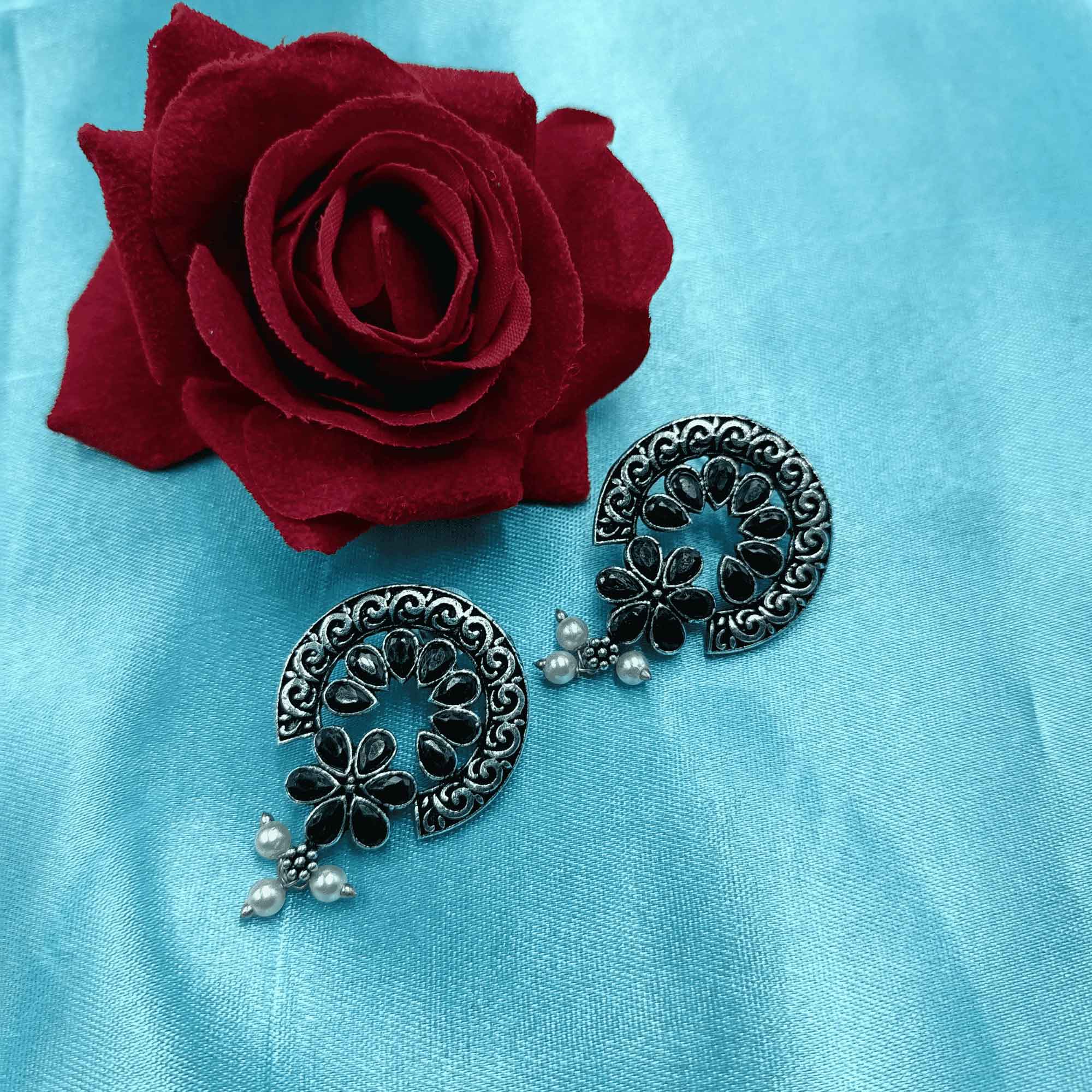 Ethereal Glow Silver Oxidized Black Color Dangler Earrings