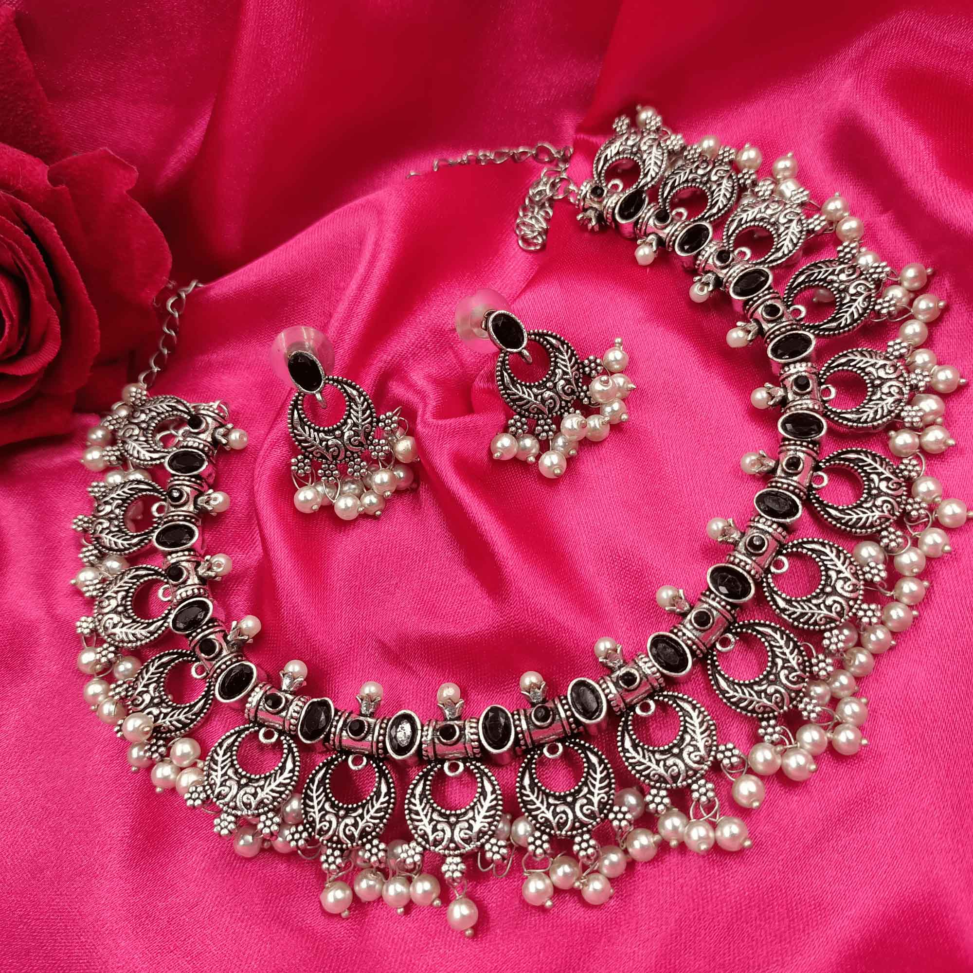 Glamorous Oxidized Silver Look Black color Necklace Set with Earrings – Online Shopping Site for Jewellery, Women Fashion Jewellery, Furniture, Grocery, Lifestyle, Dry Fruits, Seeds ; More. Best Offers!