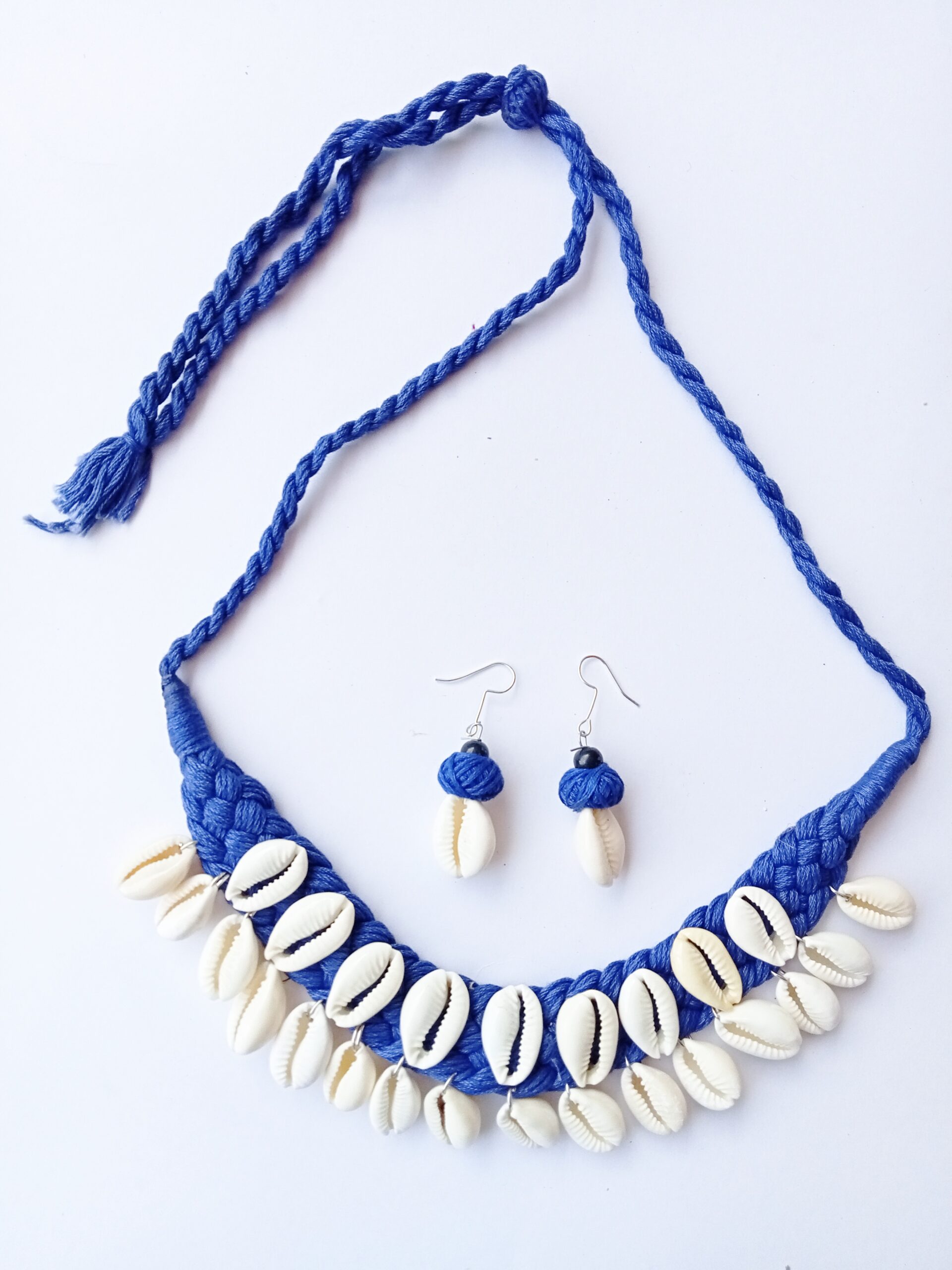 Handcrafted Coweri necklace woven in blue color thread gives an elegant look to girls and women.It is perfact wear at beach,parties and on casual occassions with western and Indian cloths.The length of the necklac is adjustable.Light weighted jewellery suitable for gifting also. The colors seen in the image may vary from the actual product due to different computer screen resolutions and displays.