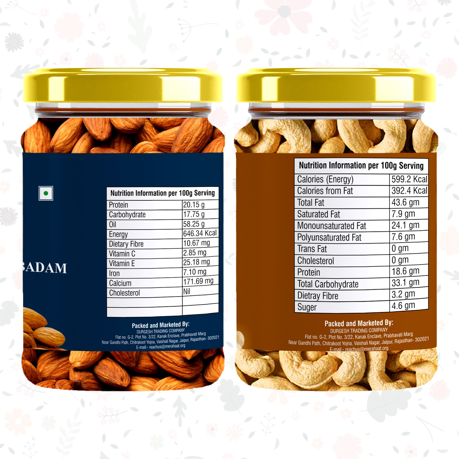 * Premium packaging of nuts is done in 2 separate re-usable pet jar with an airtight seal to ensure the product is protected and fresh.