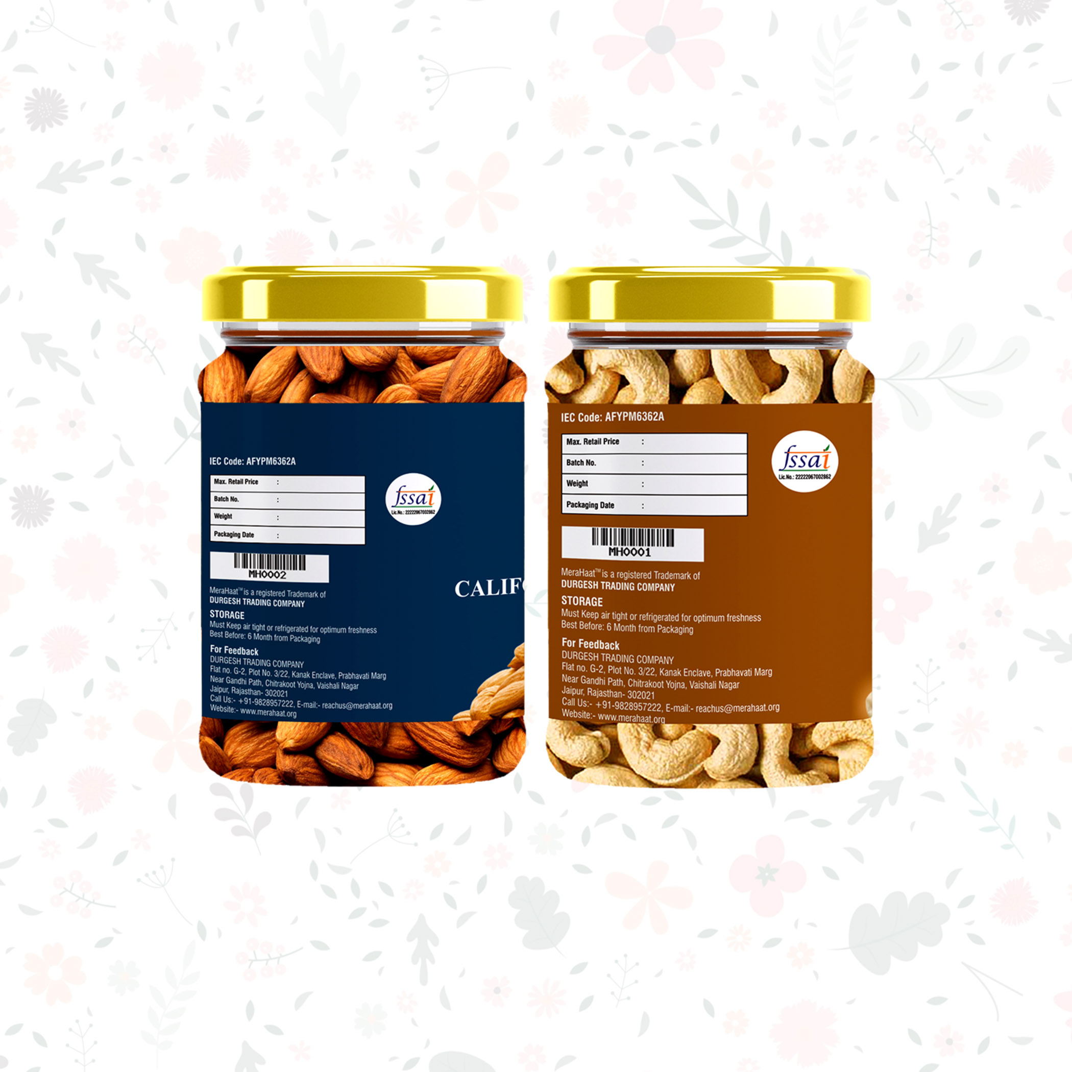 * Premium packaging of nuts is done in 2 separate re-usable pet jar with an airtight seal to ensure the product is protected and fresh.