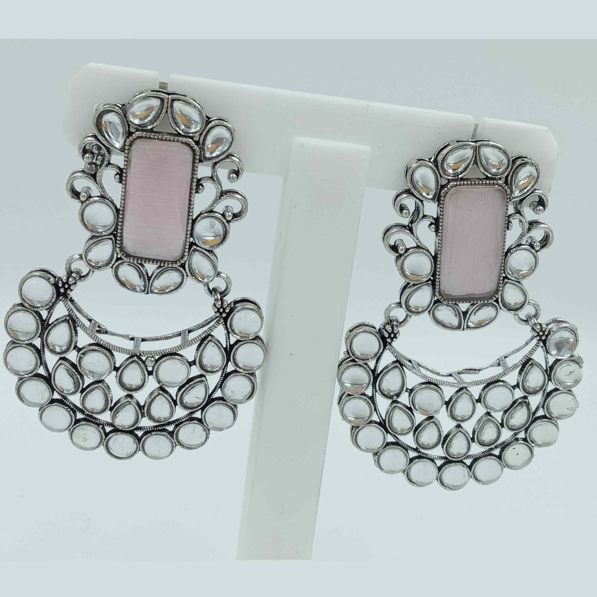 1. This antic look Oxidized Pink and White Dangle Earring with Pearl is made of German silver.It consist of set of two earrings.