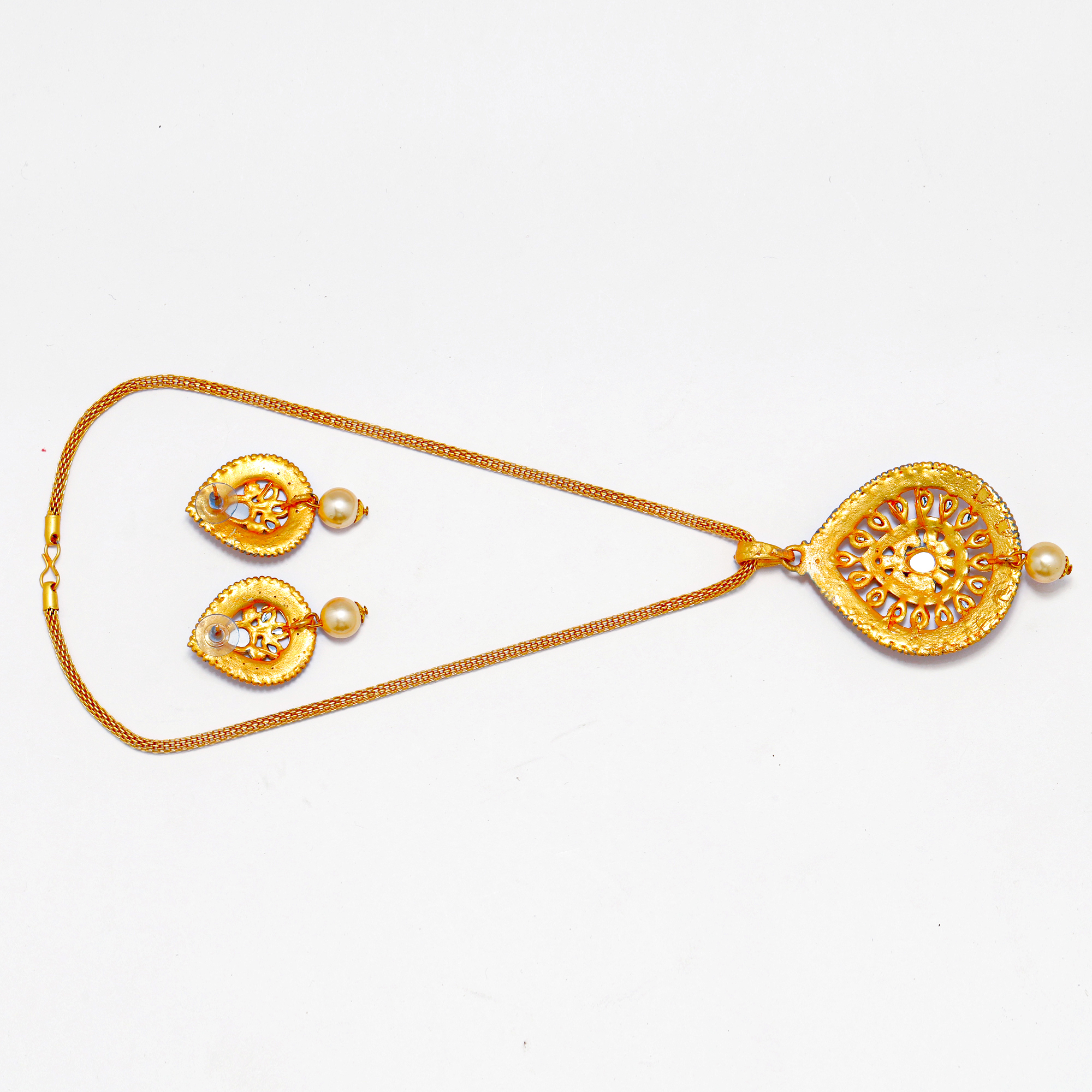 Gold plated meenakari pendent set with pearl. Made From Premium Quality Material. Skin Friendly. Perfect for casual day to day wearing and beautiful Gift for Valentine, Birthday, Anniversary. Wear It On Regular Basis,Ring Ceremony, Wedding And Festive Time .