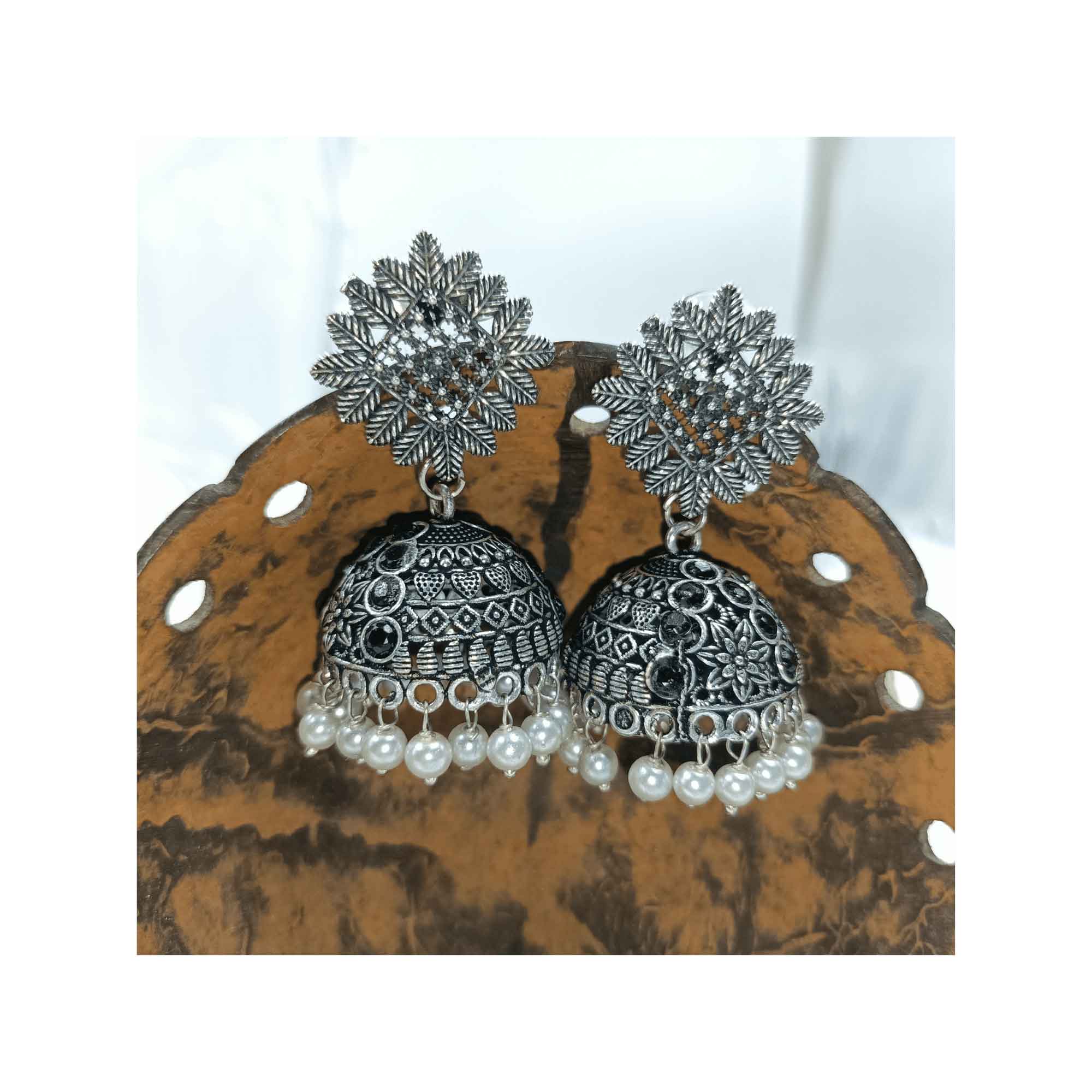 3. Handcrafted with meticulous attention to detail, our oxidized silver look Chandbali zhumki earrings exude a vintage appeal that effortlessly complements both traditional and contemporary outfits.