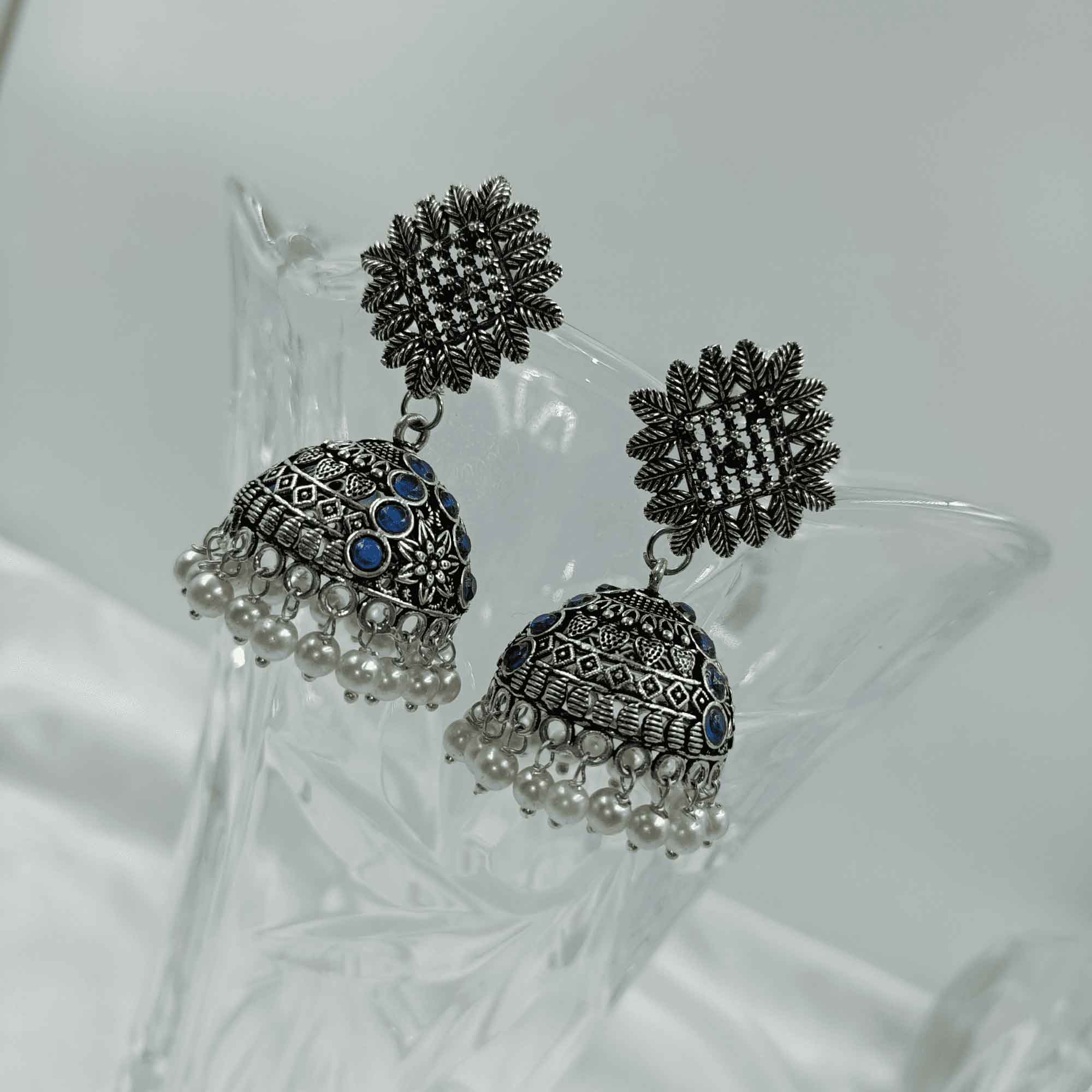 3. Handcrafted with meticulous attention to detail, our oxidized silver look Chandbali zhumki earrings exude a vintage appeal that effortlessly complements both traditional and contemporary outfits.