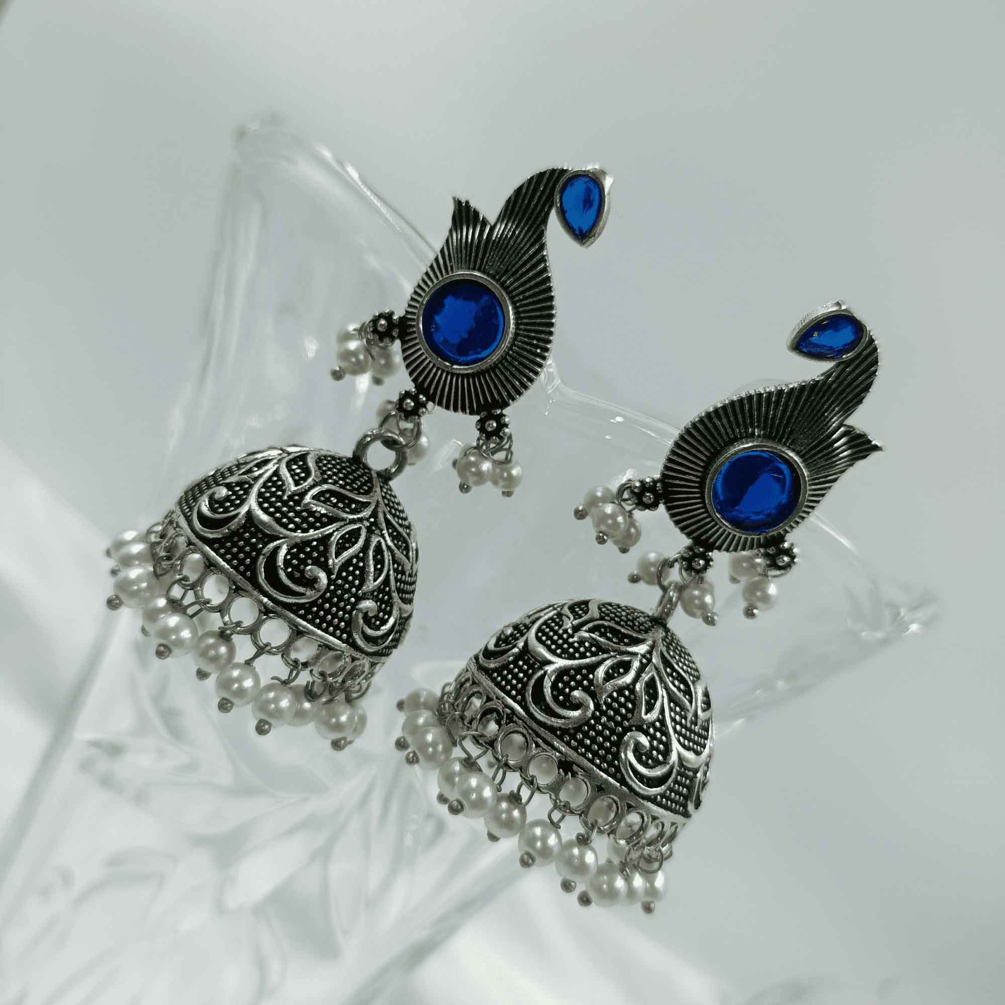 3. Handcrafted with meticulous attention to detail, our oxidized silver look Chandbali zhumki earrings exude a vintage appeal that effortlessly complements both traditional and contemporary outfits.