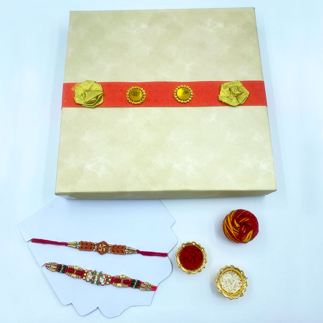 Comes with 2 beautifully designed Rakhis for Brother & Bhaiya-Bhabhi