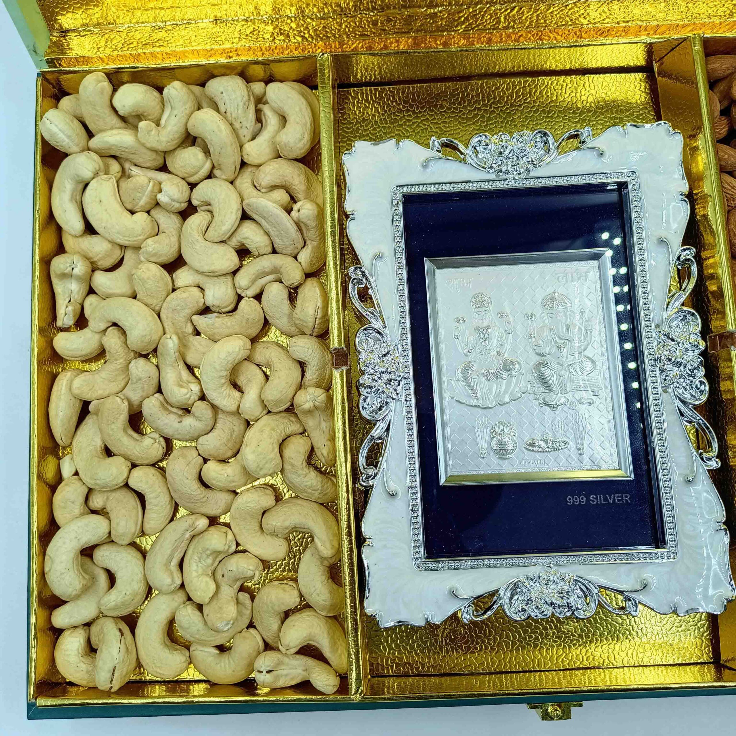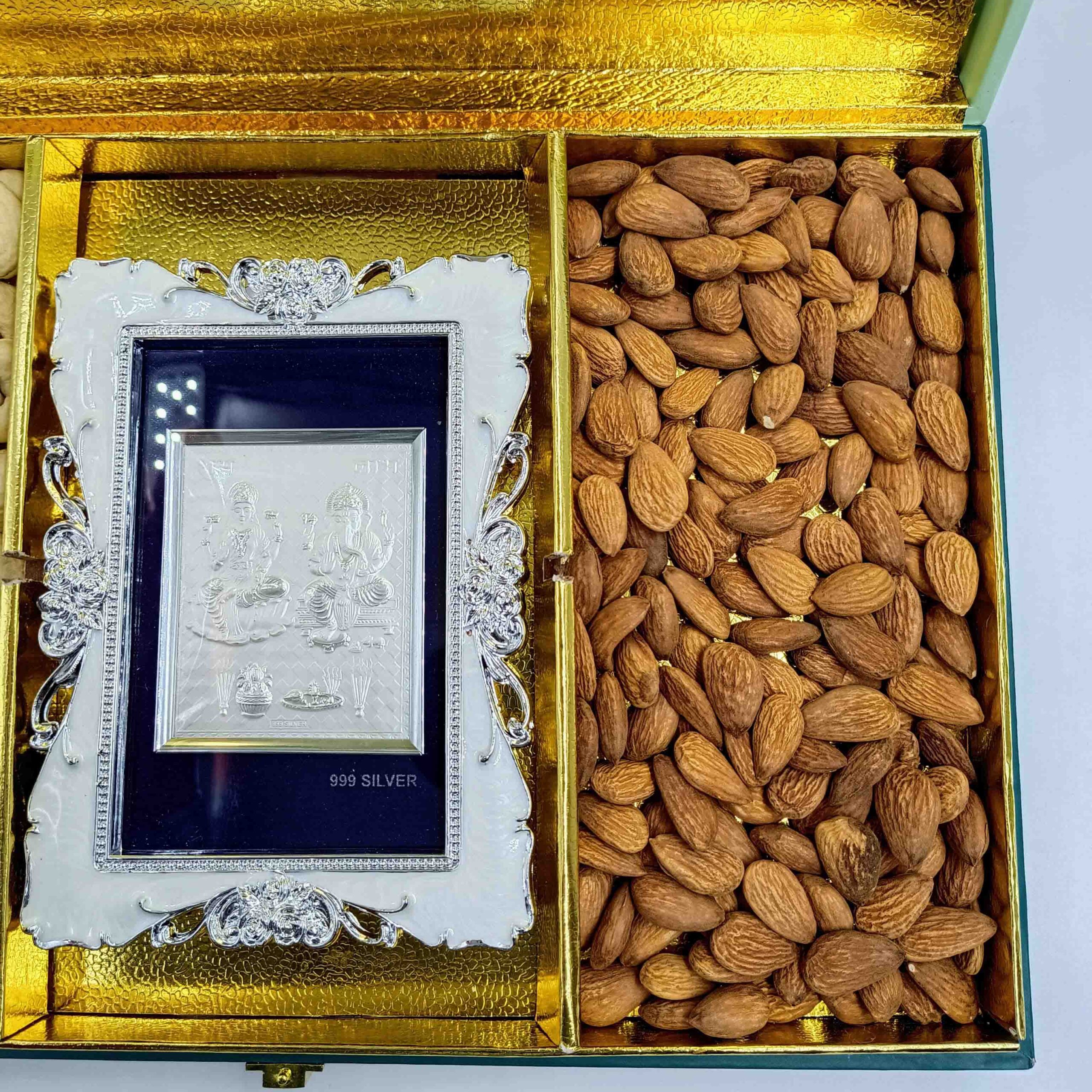Sab Se Special Diwali Gift Hamper | Lakshmi Ganesh Photo in 999 Silver Frame (4 x 6 inches) with Premium Dry Fruit Box | 200g Cashews & 200g Almonds | Ideal Festive Gift for Family & Friends