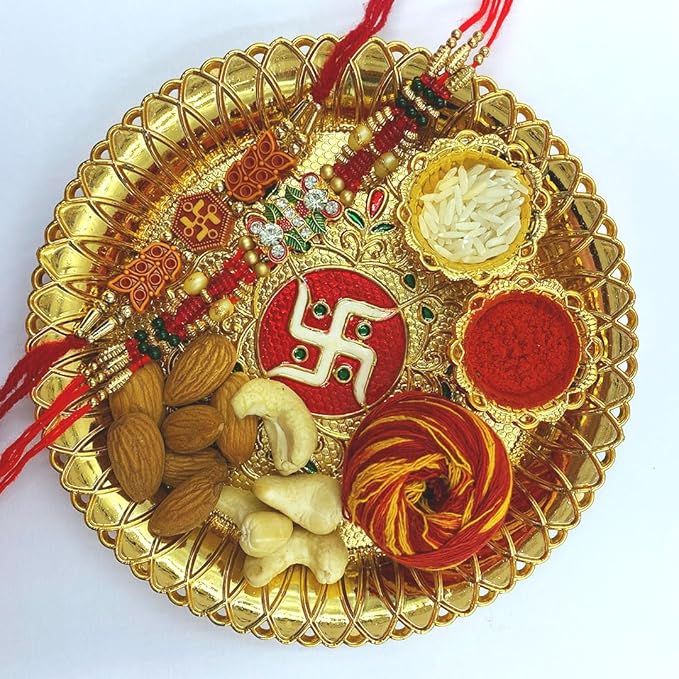 Comes with a stunning designer rakhi, elegant pooja thali, roli, moli & chawal for a complete ritual