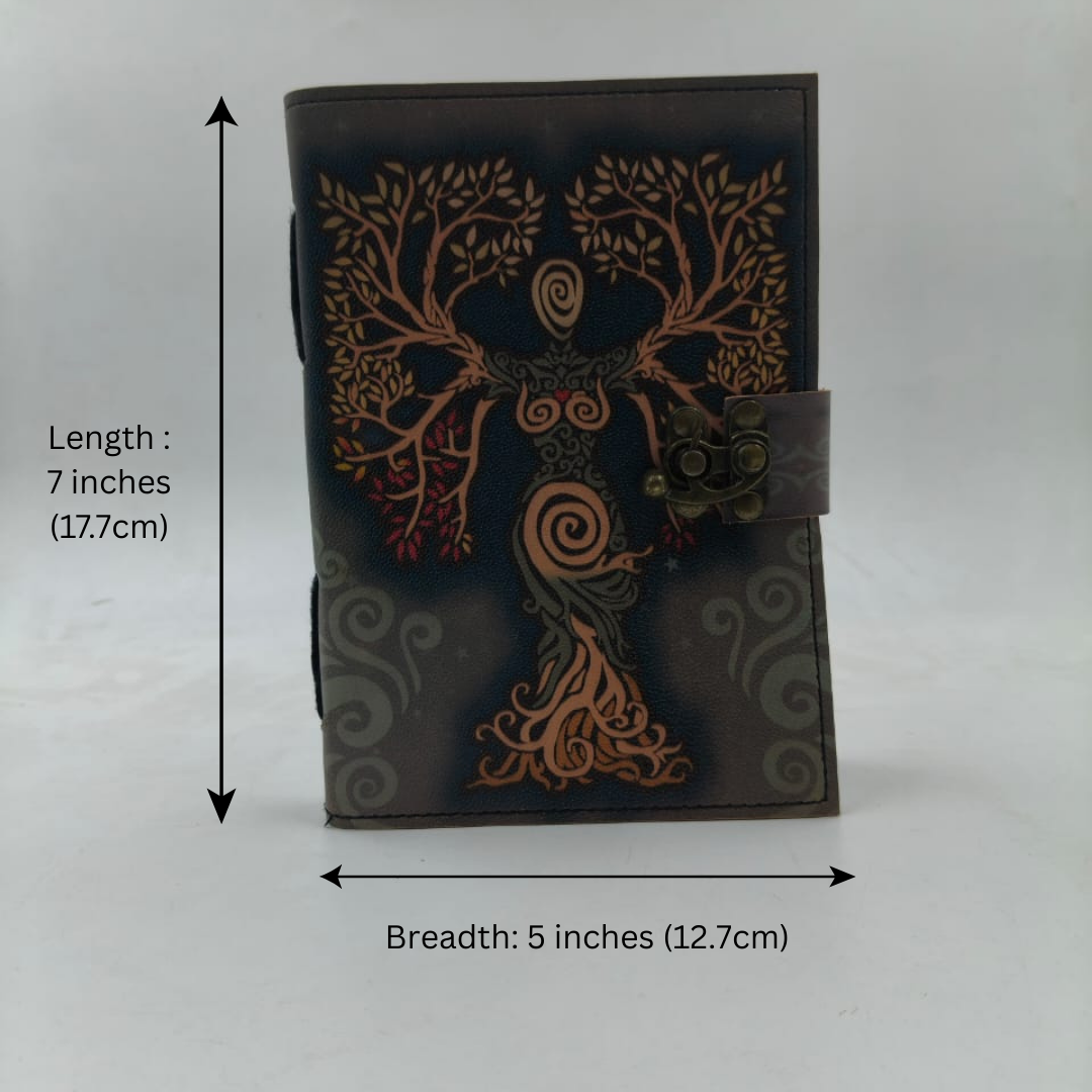 Made with a premium leather-finish cover, this notebook offers durability along with a rich vintage look. The secure antique-style metal lock keeps your thoughts, ideas, and memories safely protected. Its compact size of 7 x 5 inches (17.7 × 12.7 cm) makes it easy to carry for daily journaling, travel writing, sketching, or meditation notes.